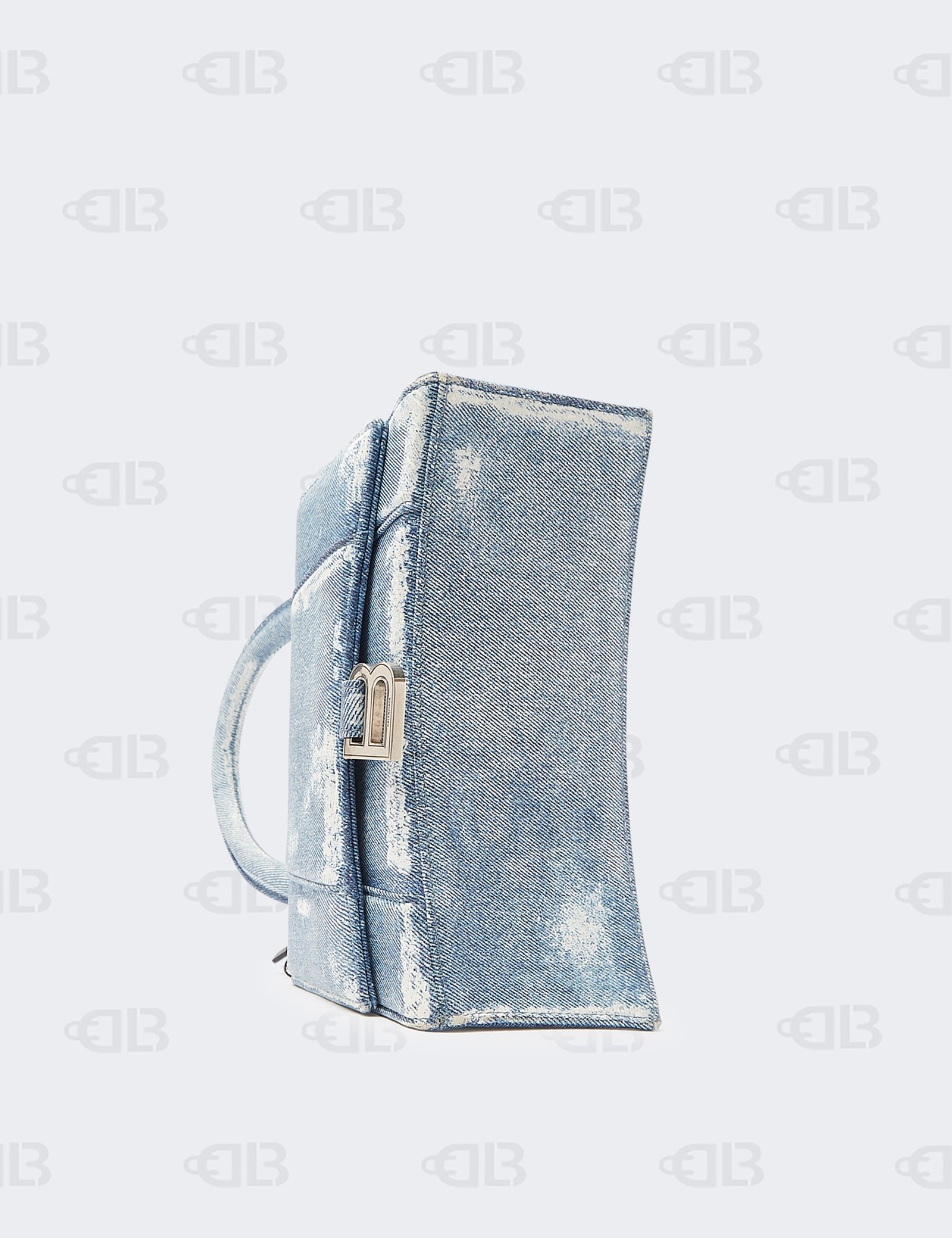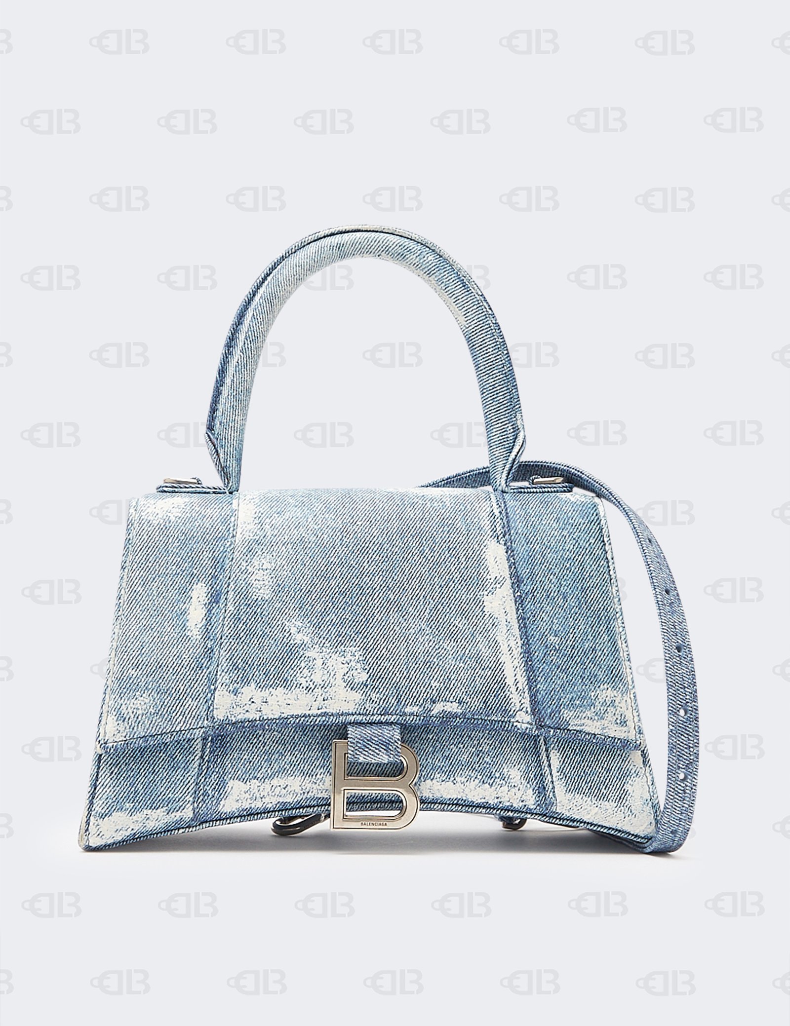 Balenciaga Nappa Denim Printed Hourglass Top Handle Bag XS Denim Blue