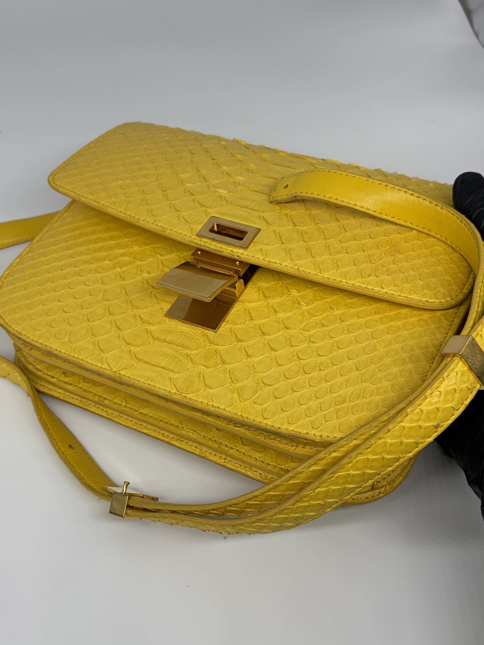 Celine Yellow Python Medium Classic Box Shoulder Bag