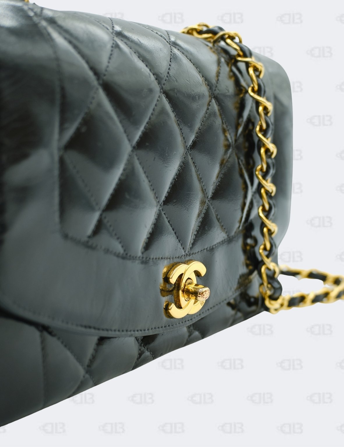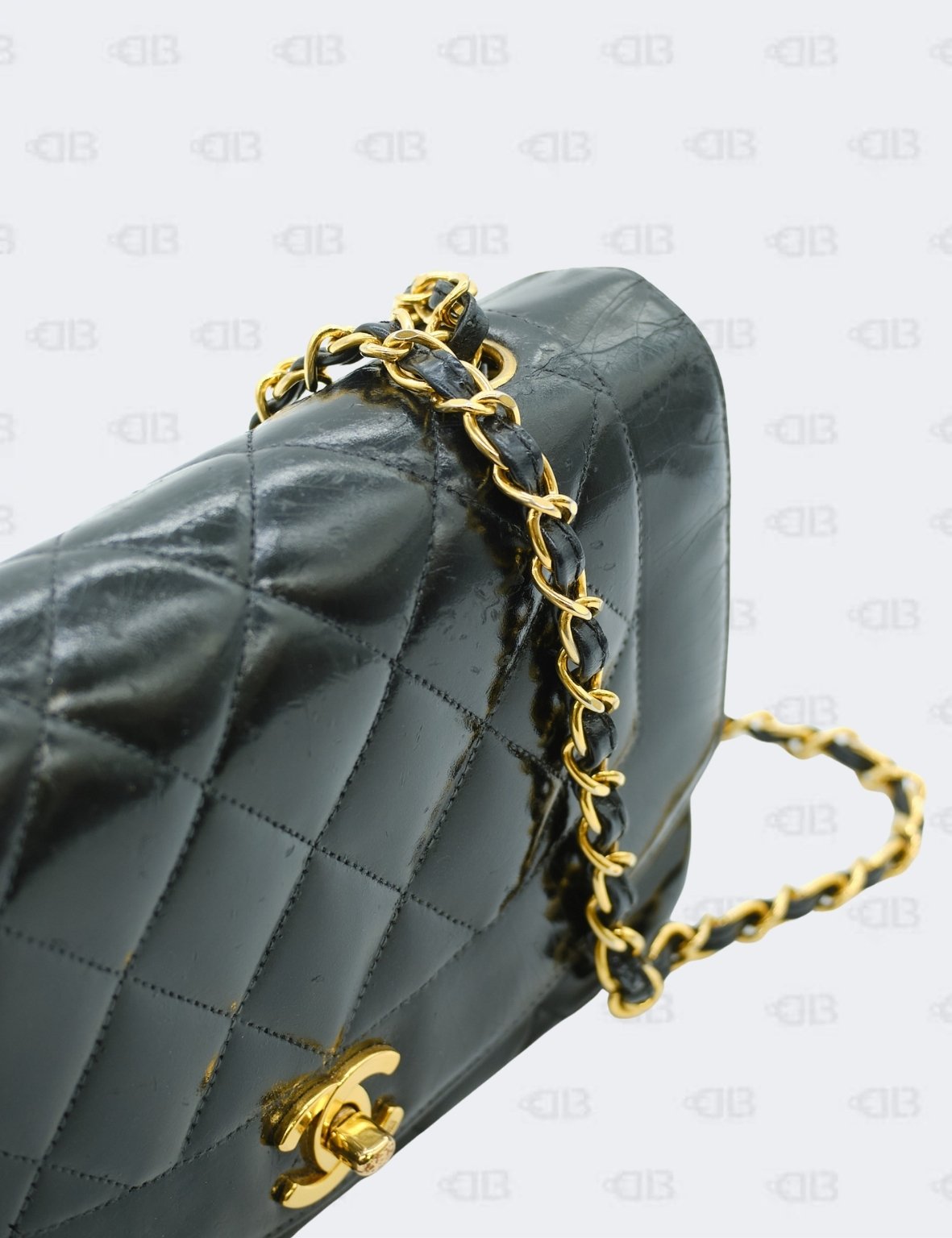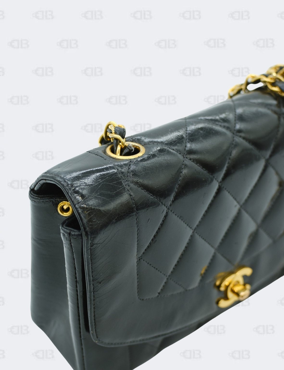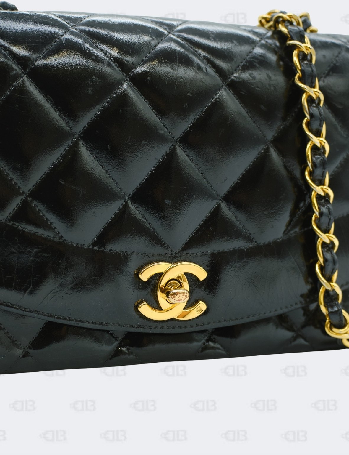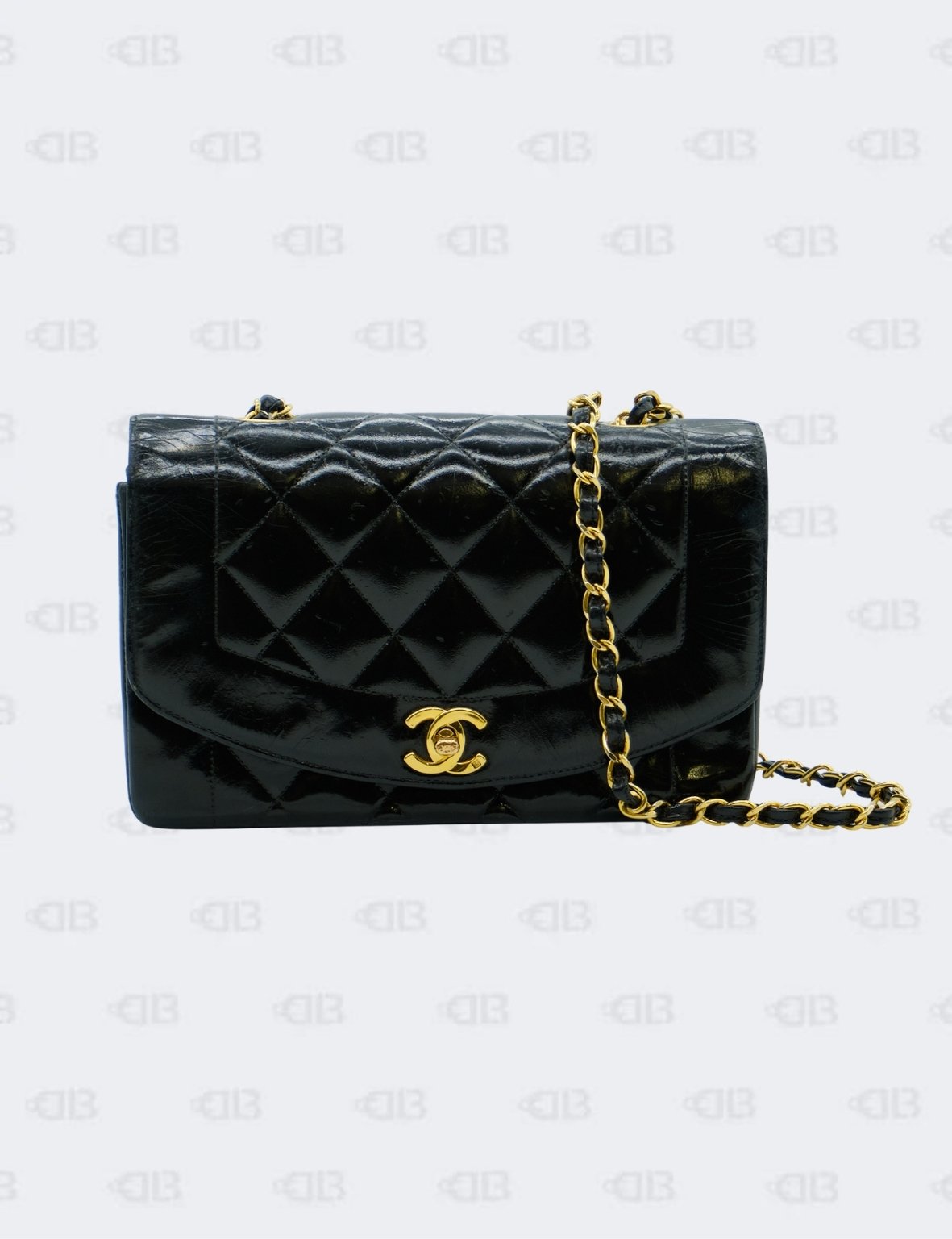 Chanel Black Vintage Diana Quilted Patent Flap Bag