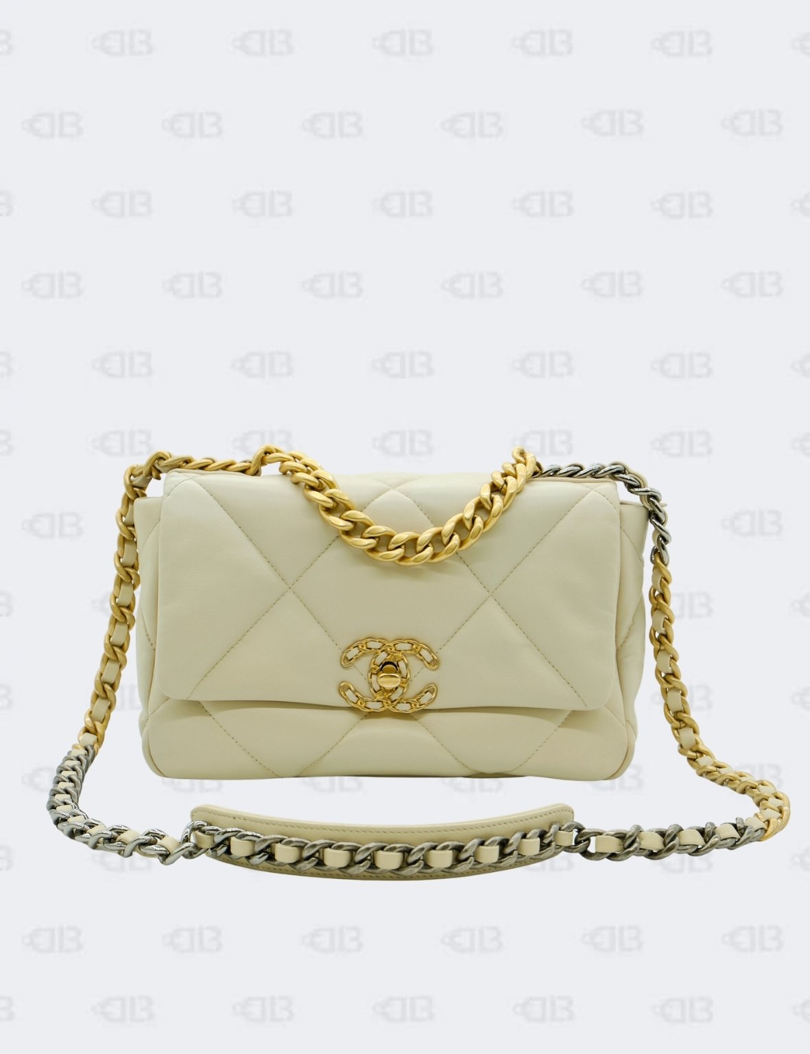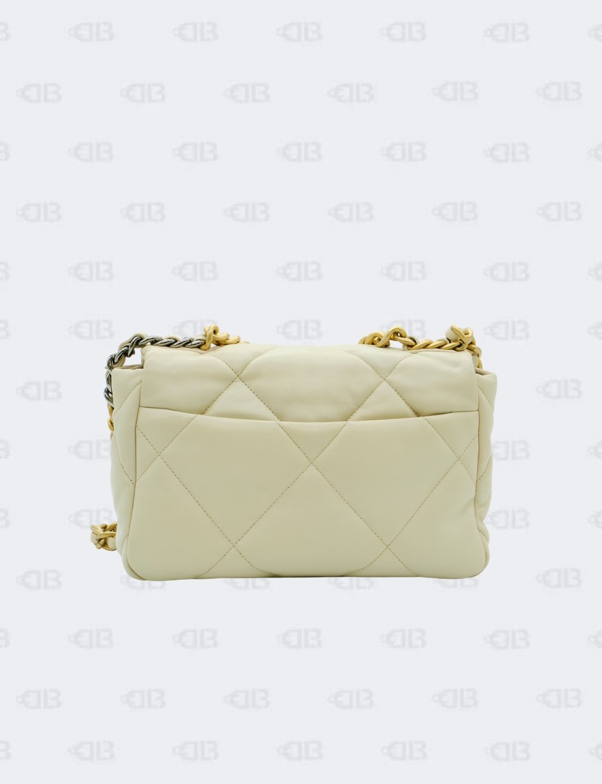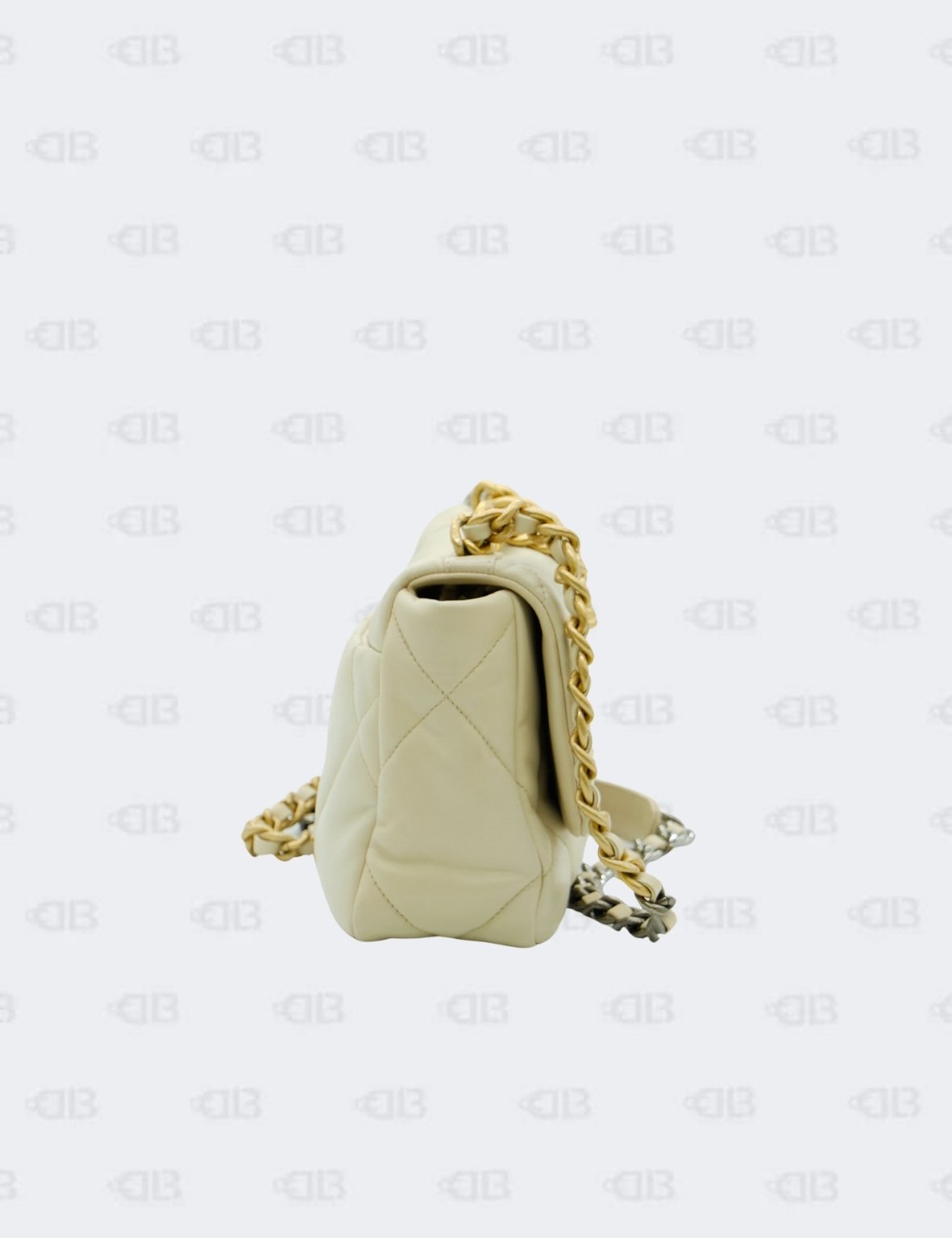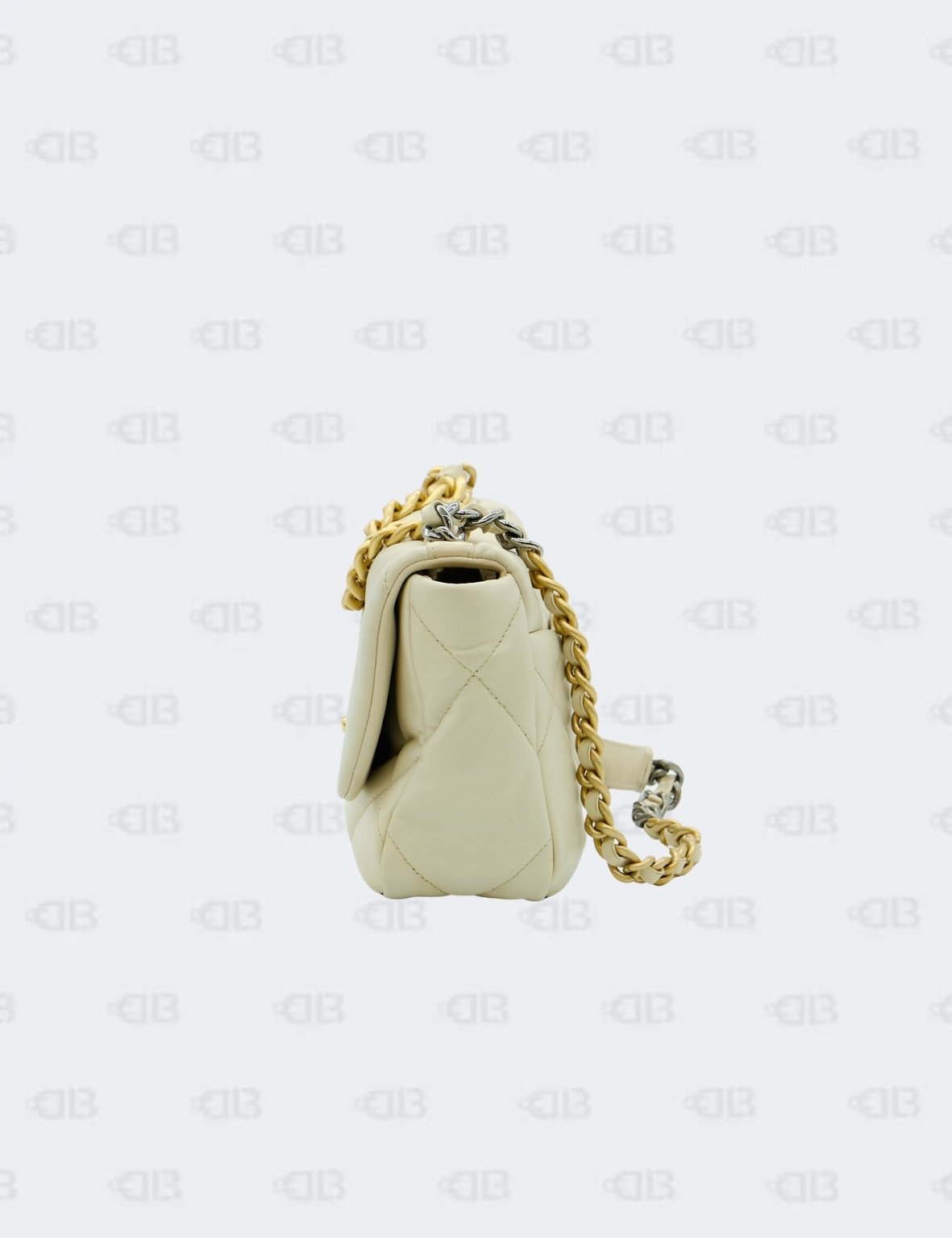 Chanel C19 Small Ivory Quilted Goatskin With Mized Metal Chain Flap Bag