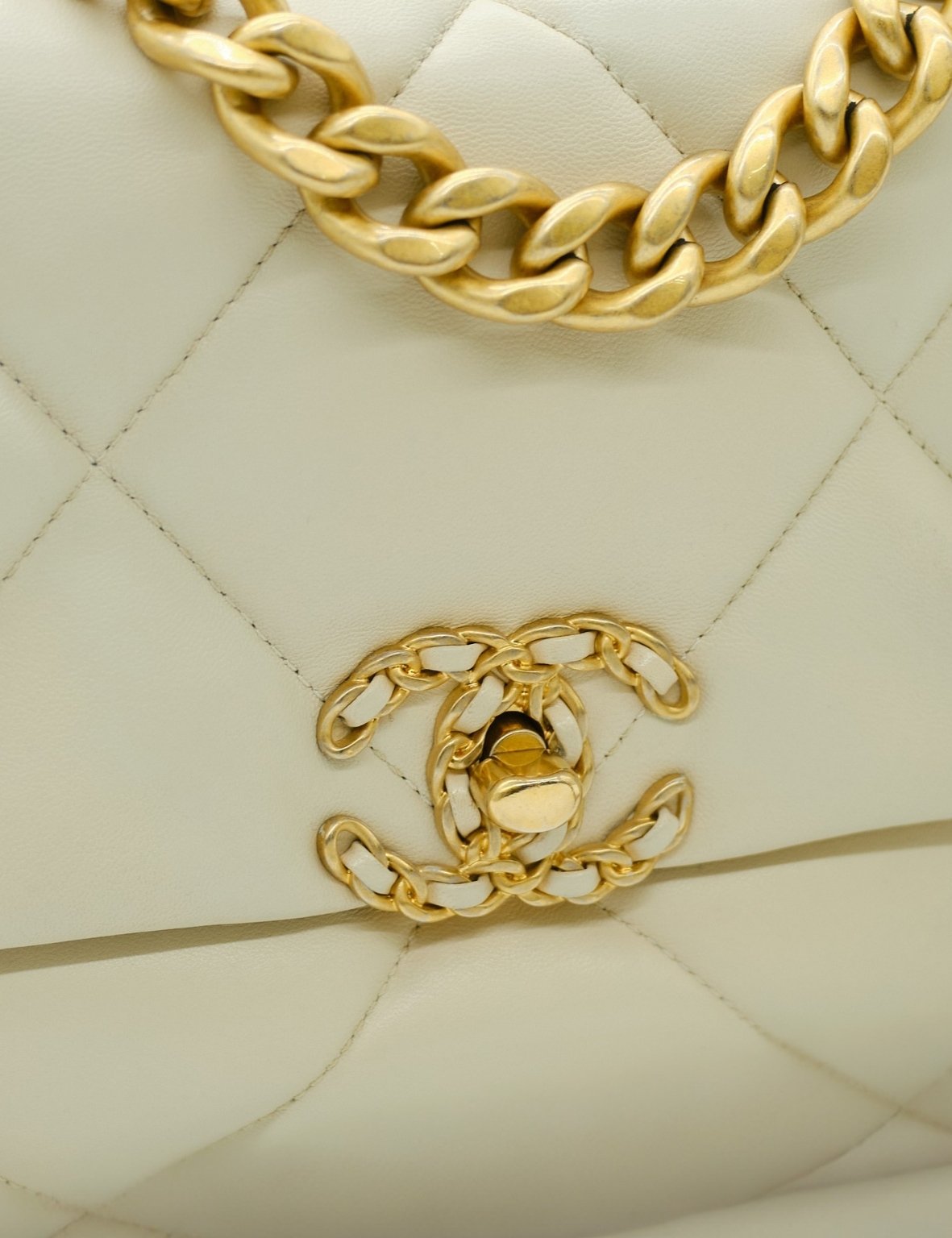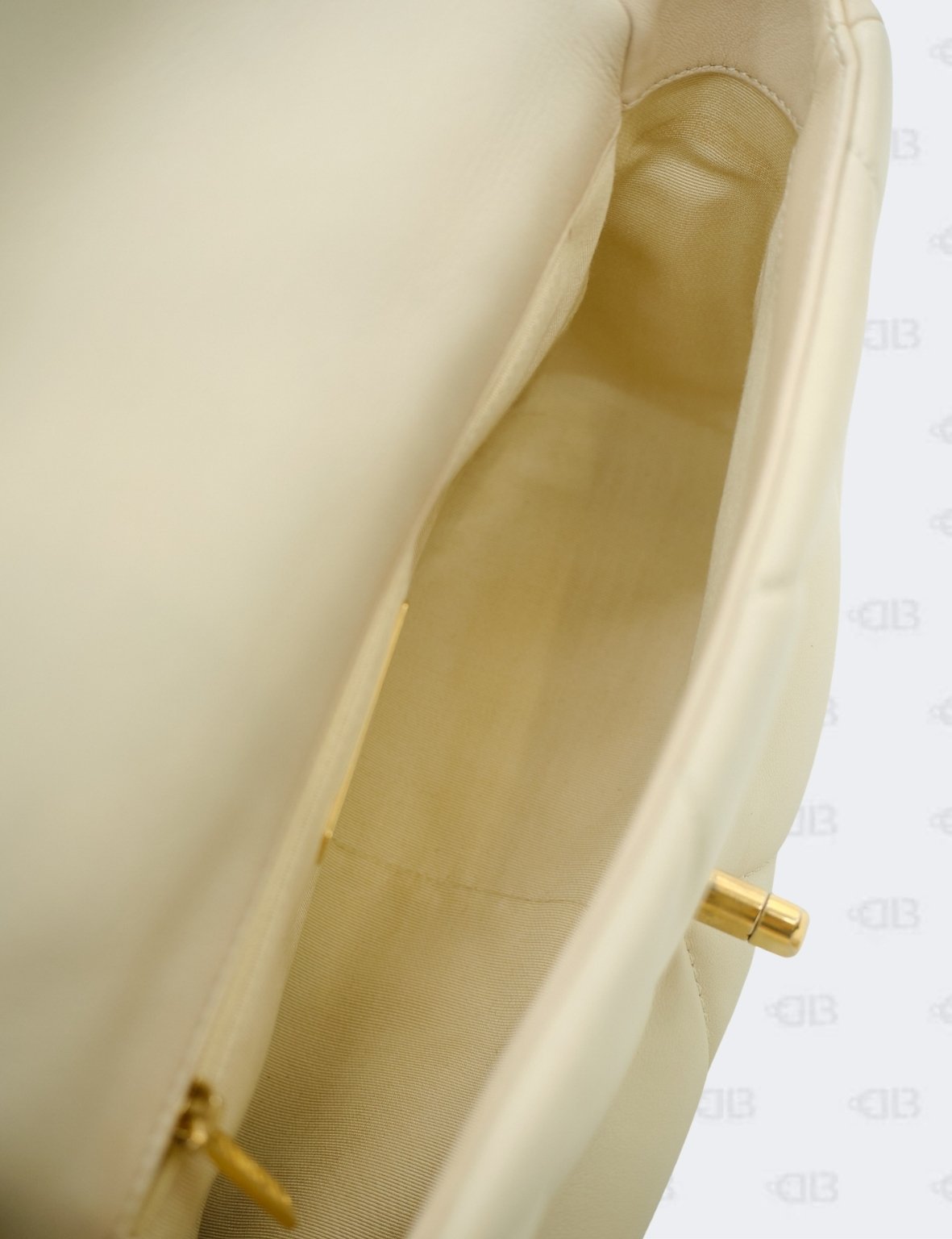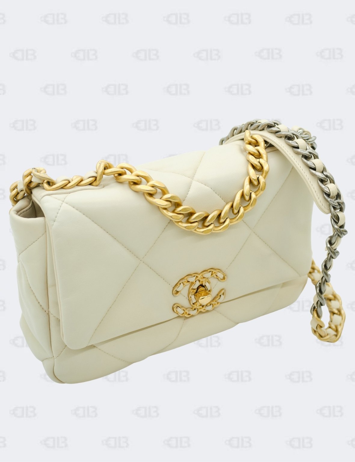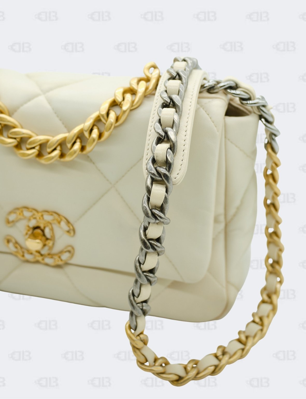 Chanel C19 Small Ivory Quilted Goatskin With Mized Metal Chain Flap Bag