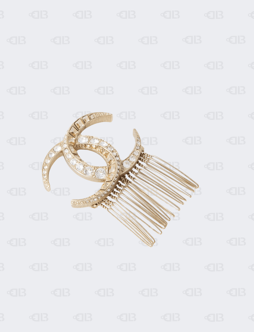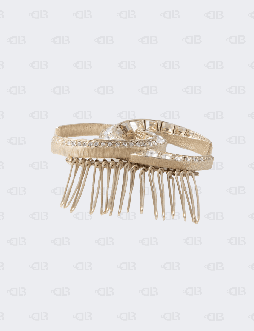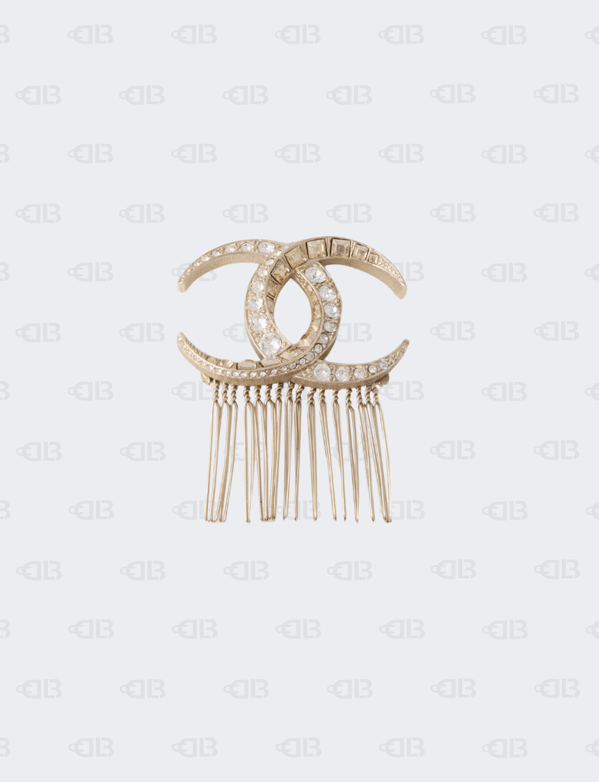 Chanel CC Crystal Embellised Gold Tone Hair Comb Pin