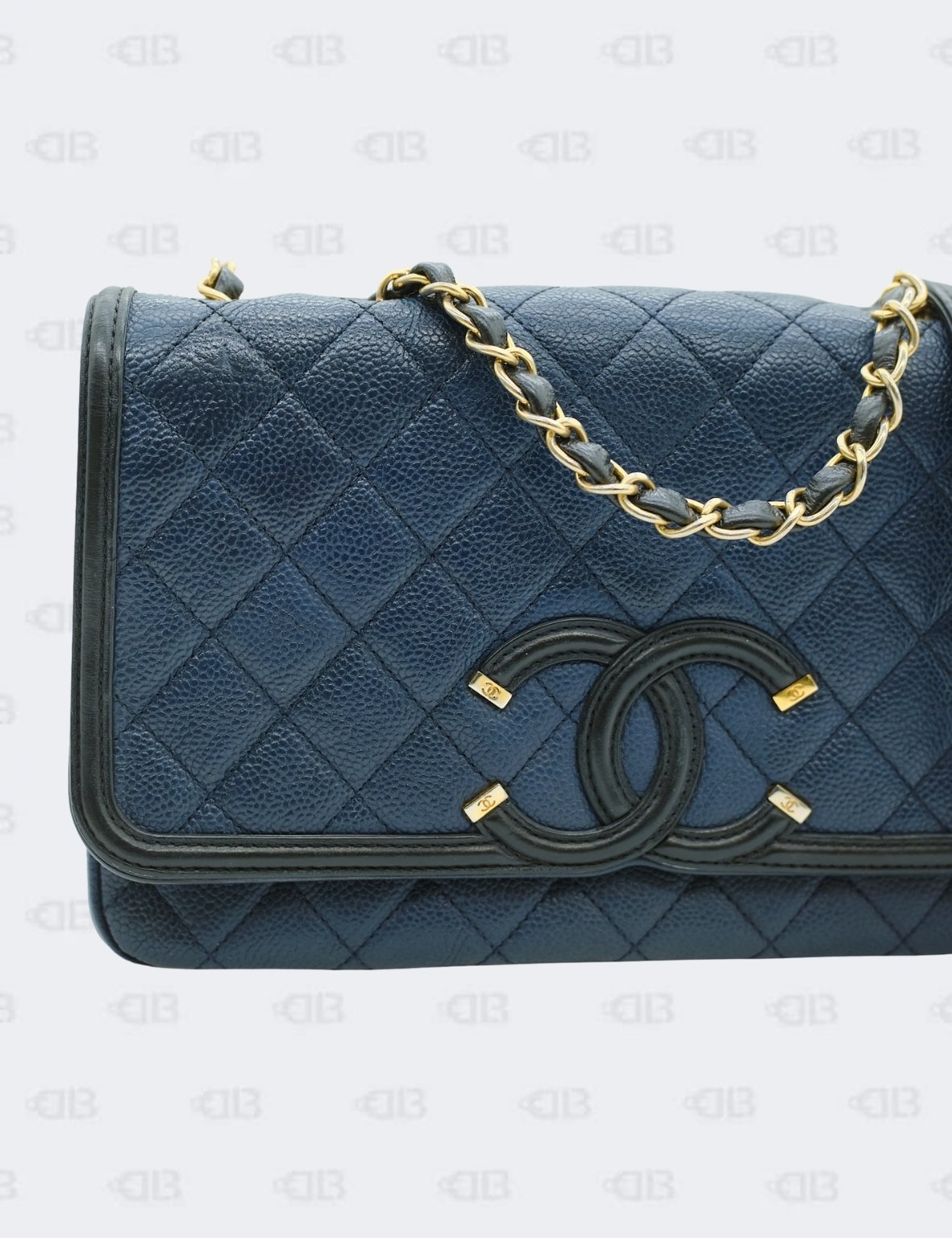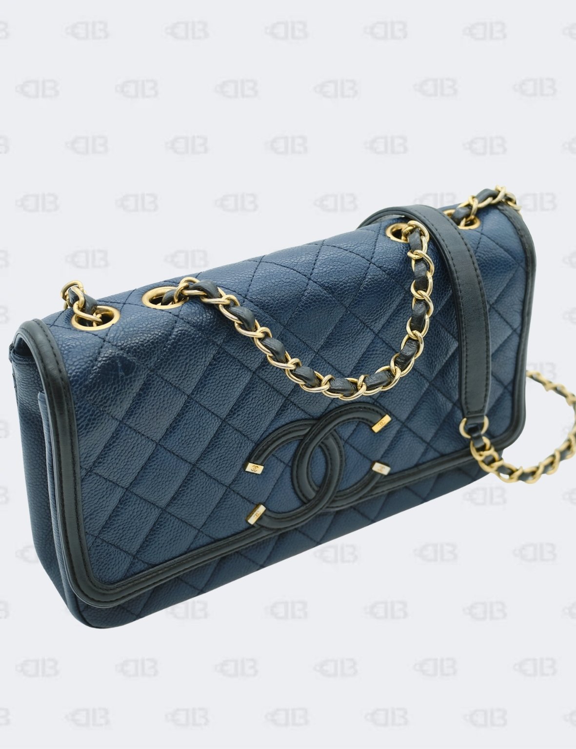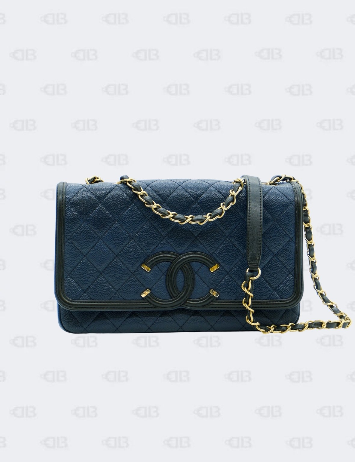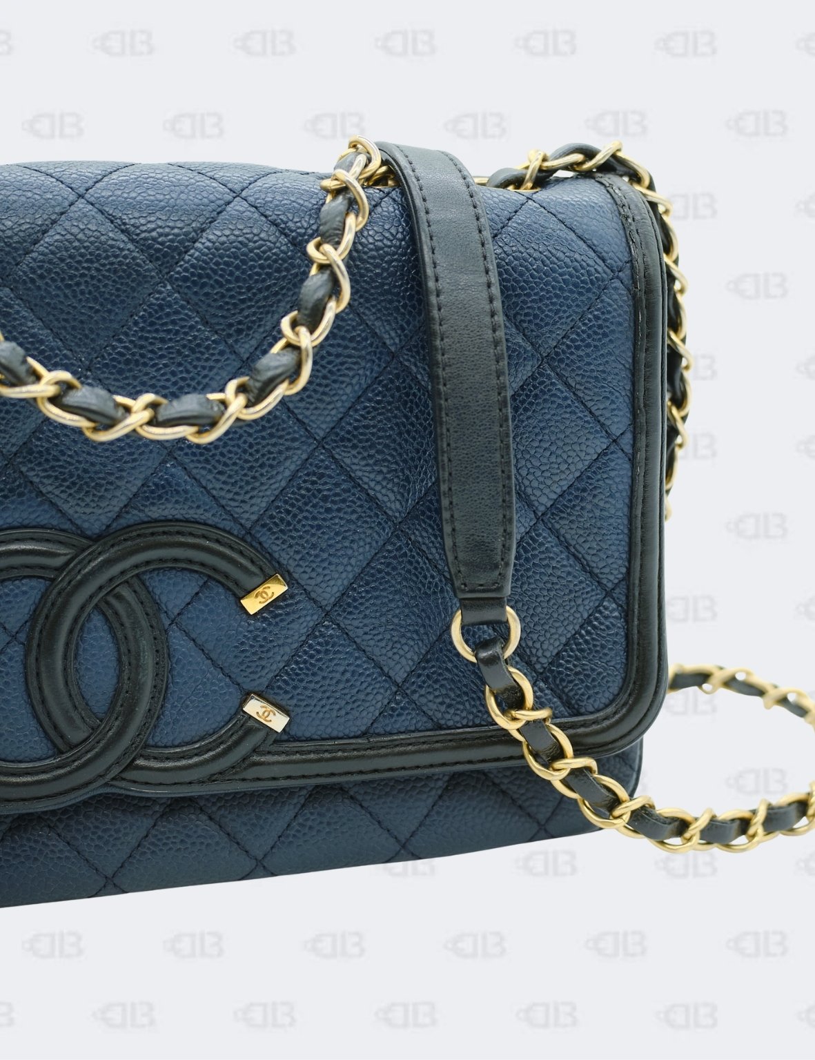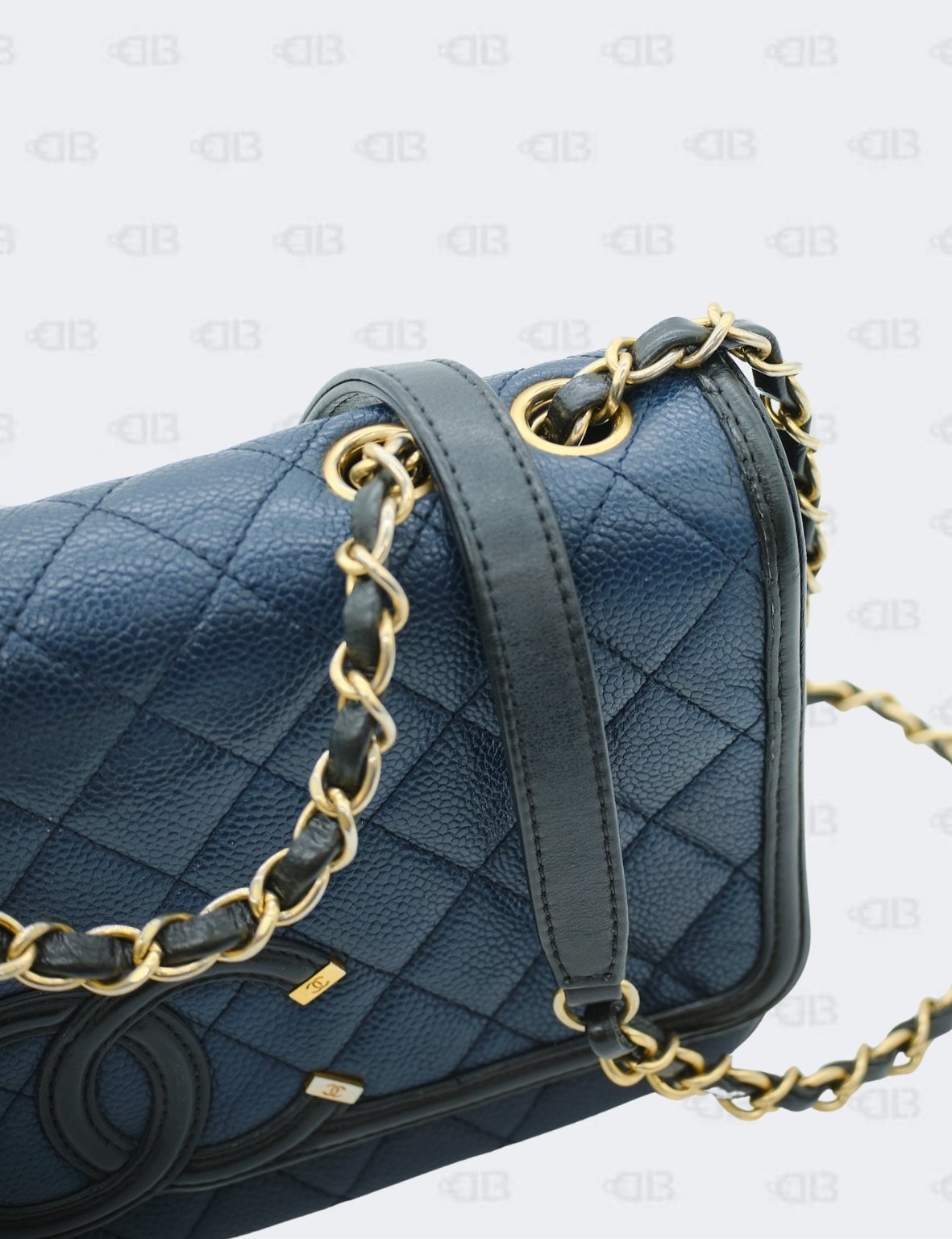 Chanel Cc Filigree Navy Black Quilted Caviar Flap Bag