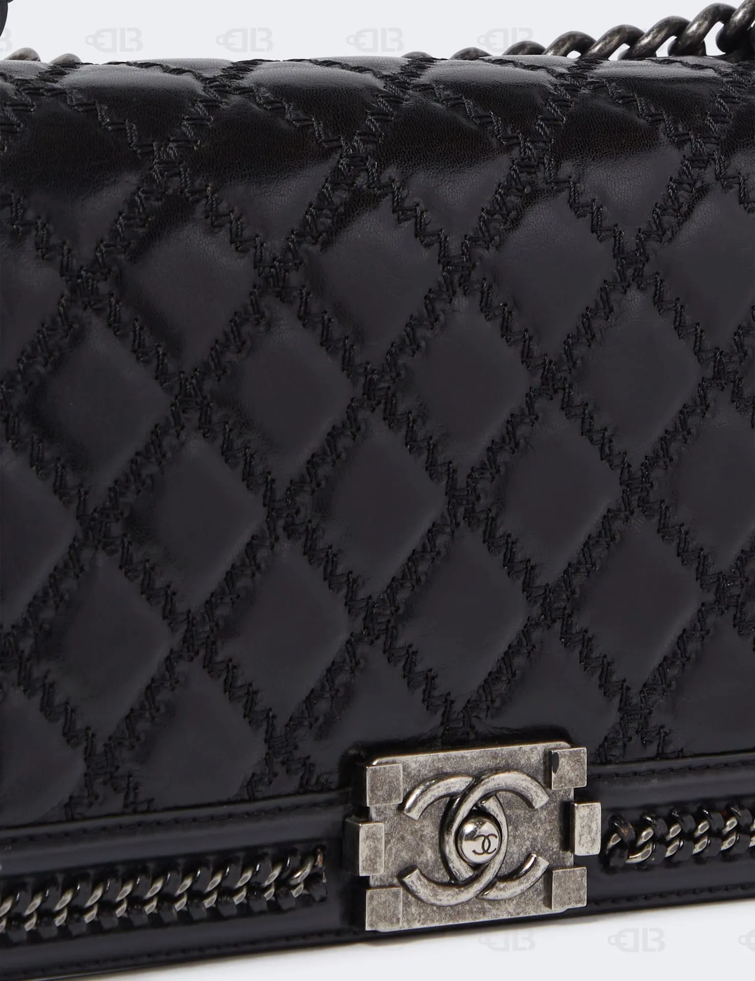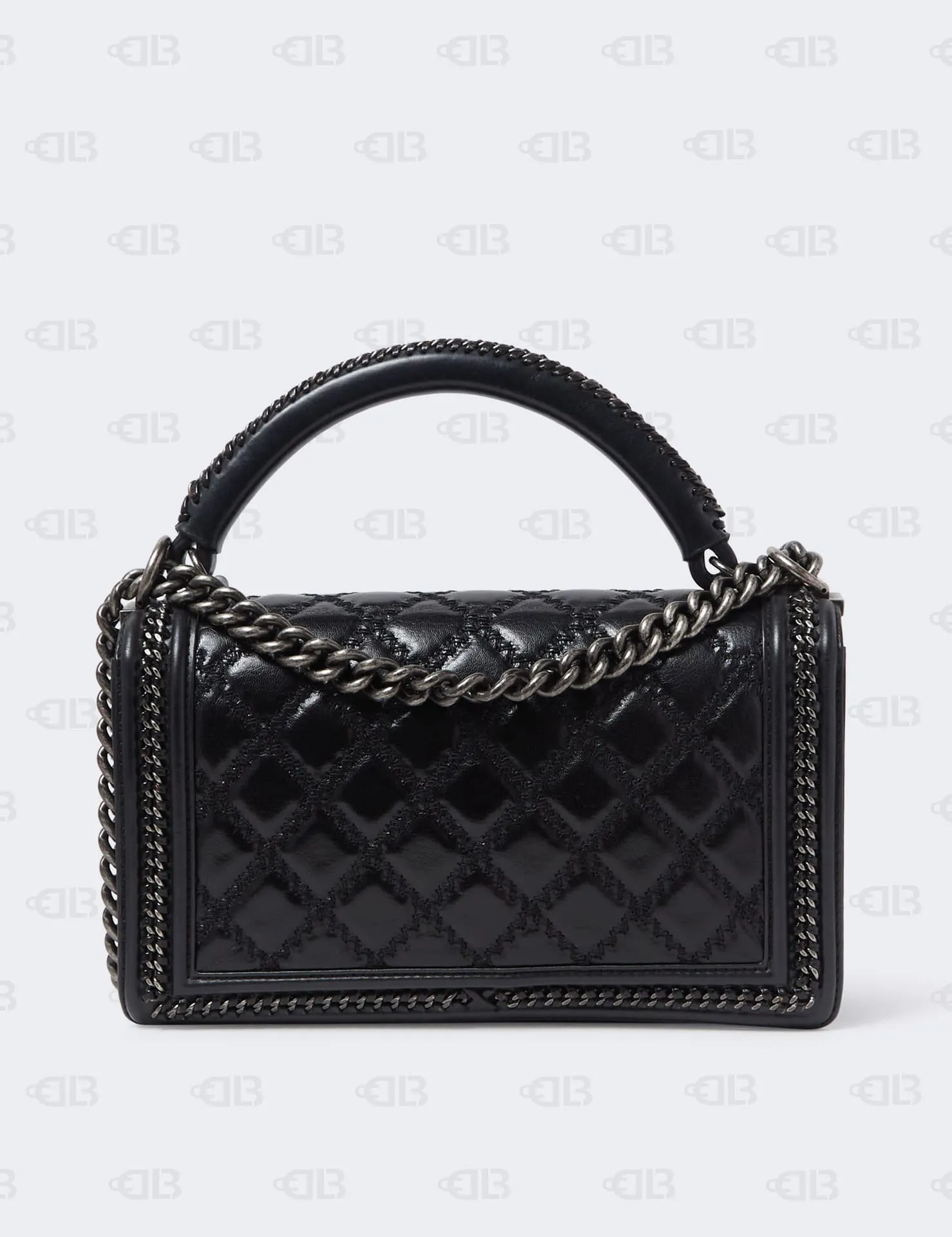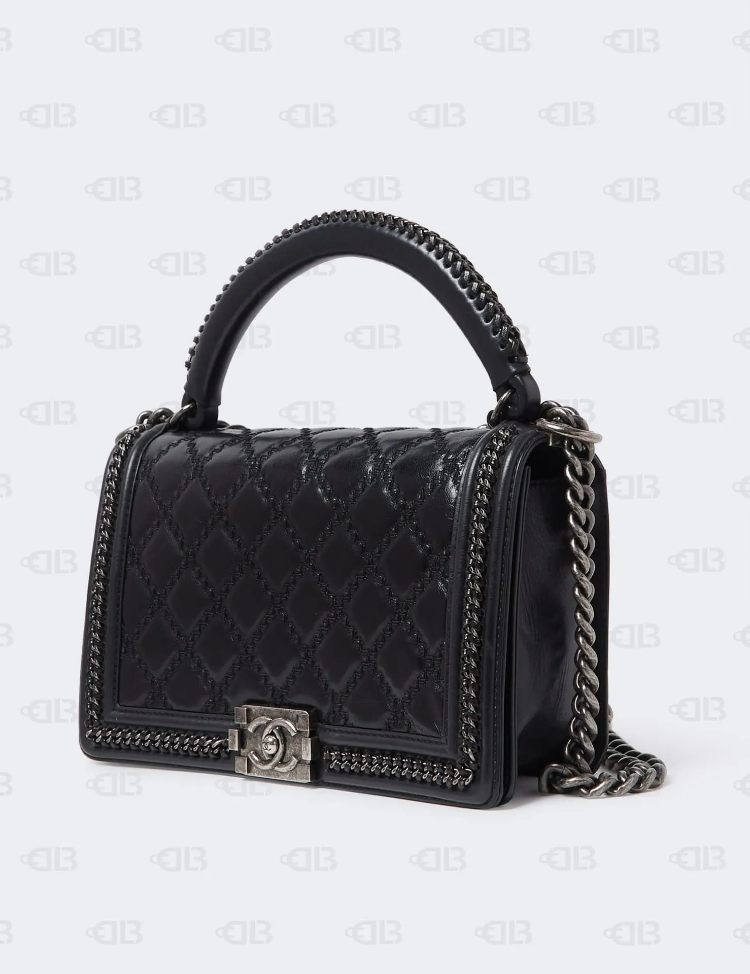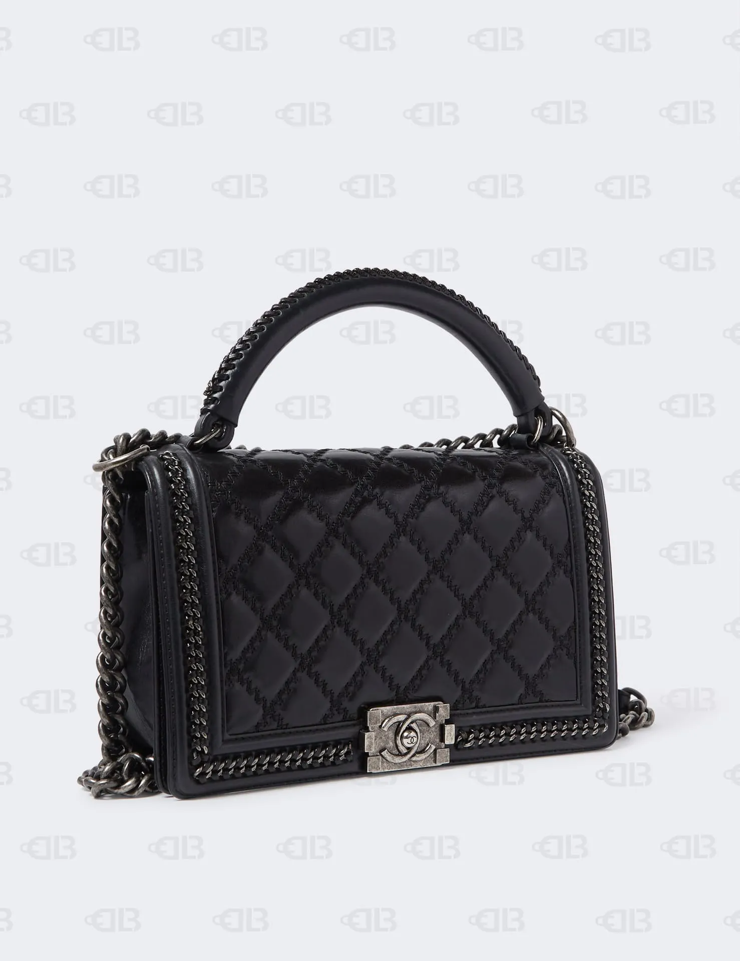 CHANEL Goatskin Quilted Medium Boy Handle Flap Black