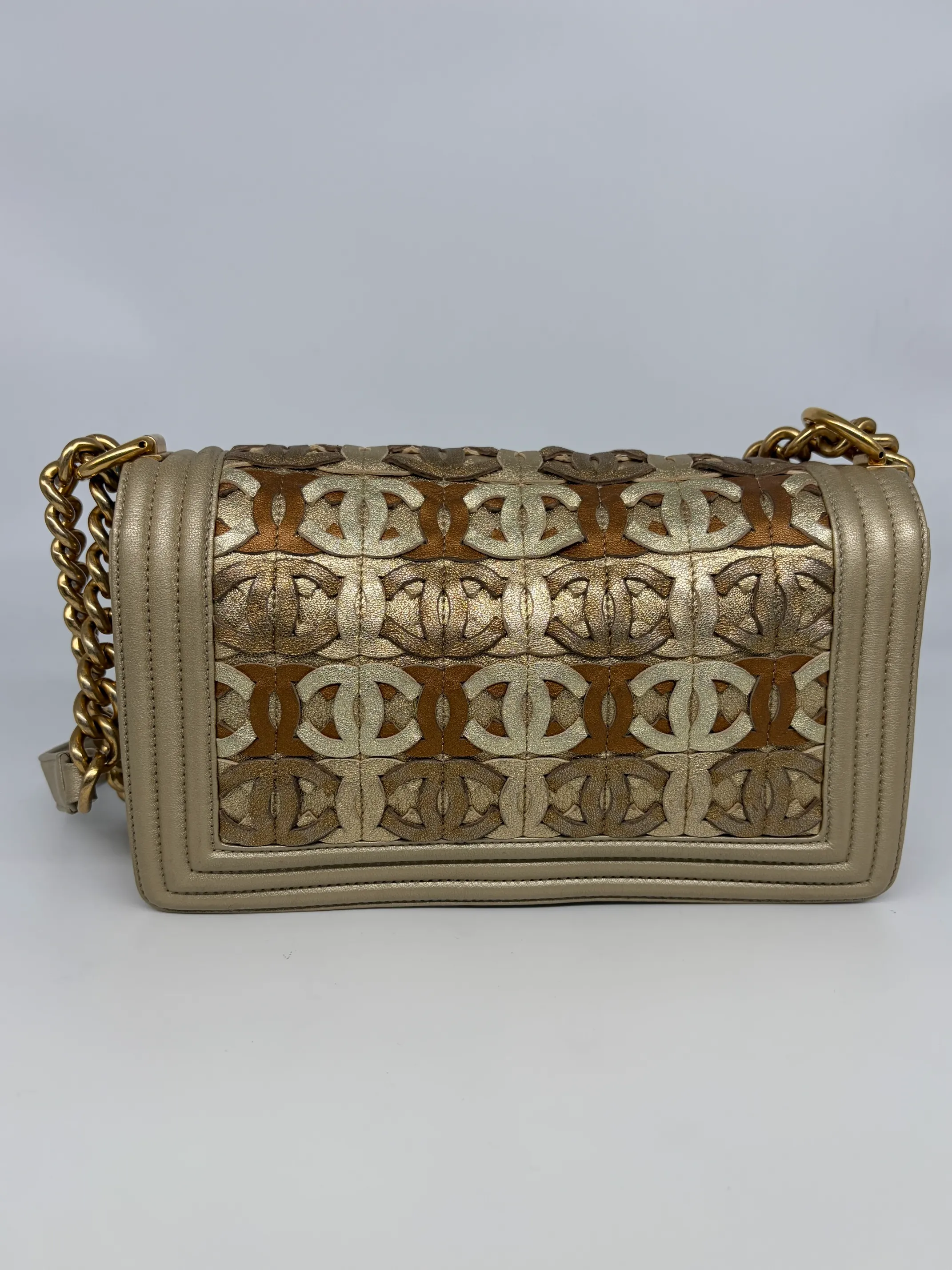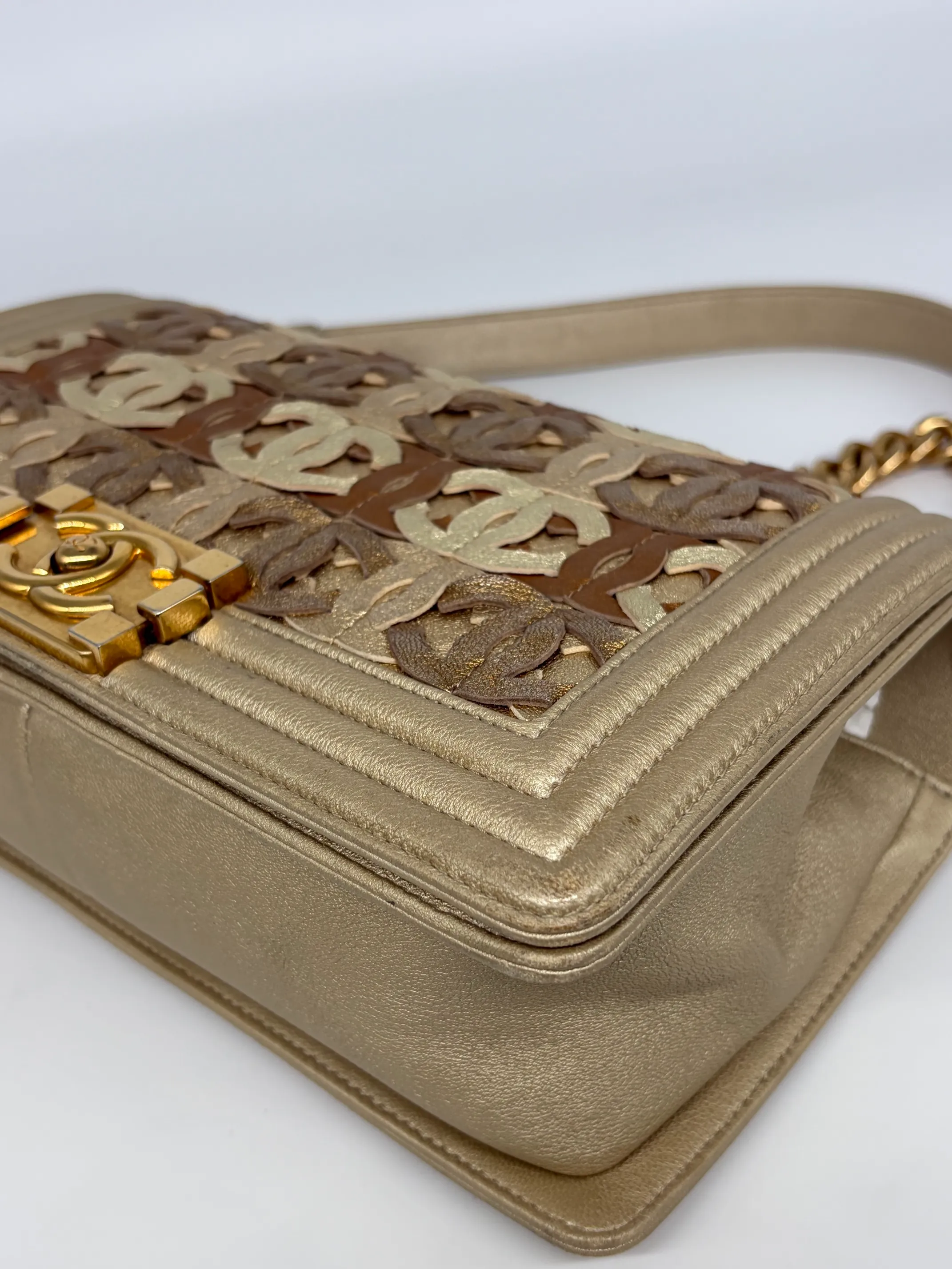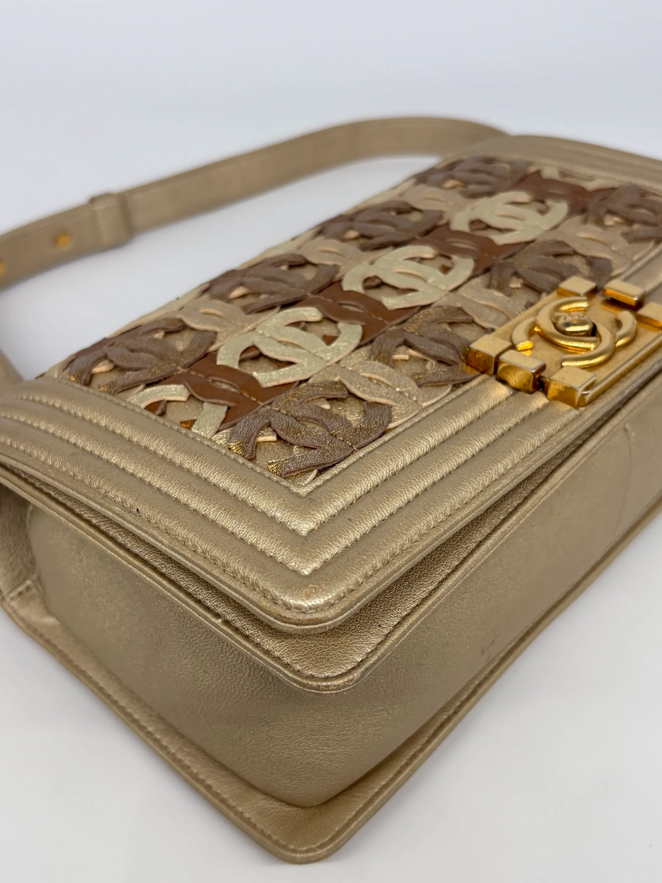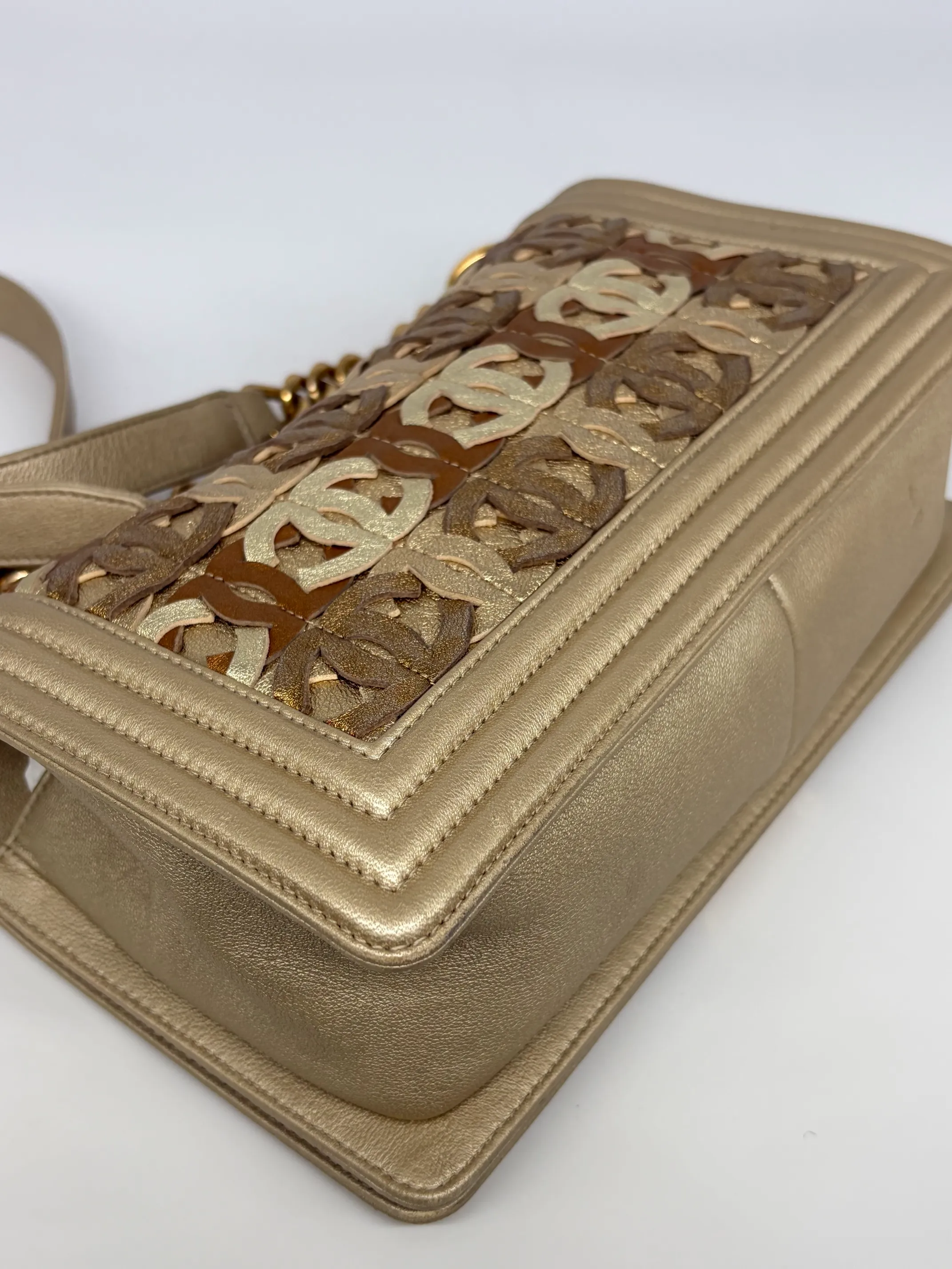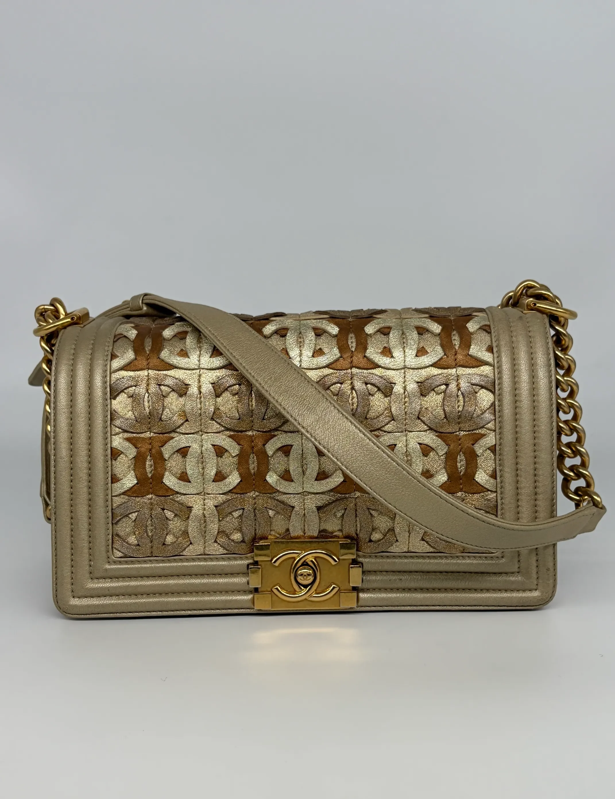 Chanel Gold Cc Cut Out Leather Medium Boy Bag