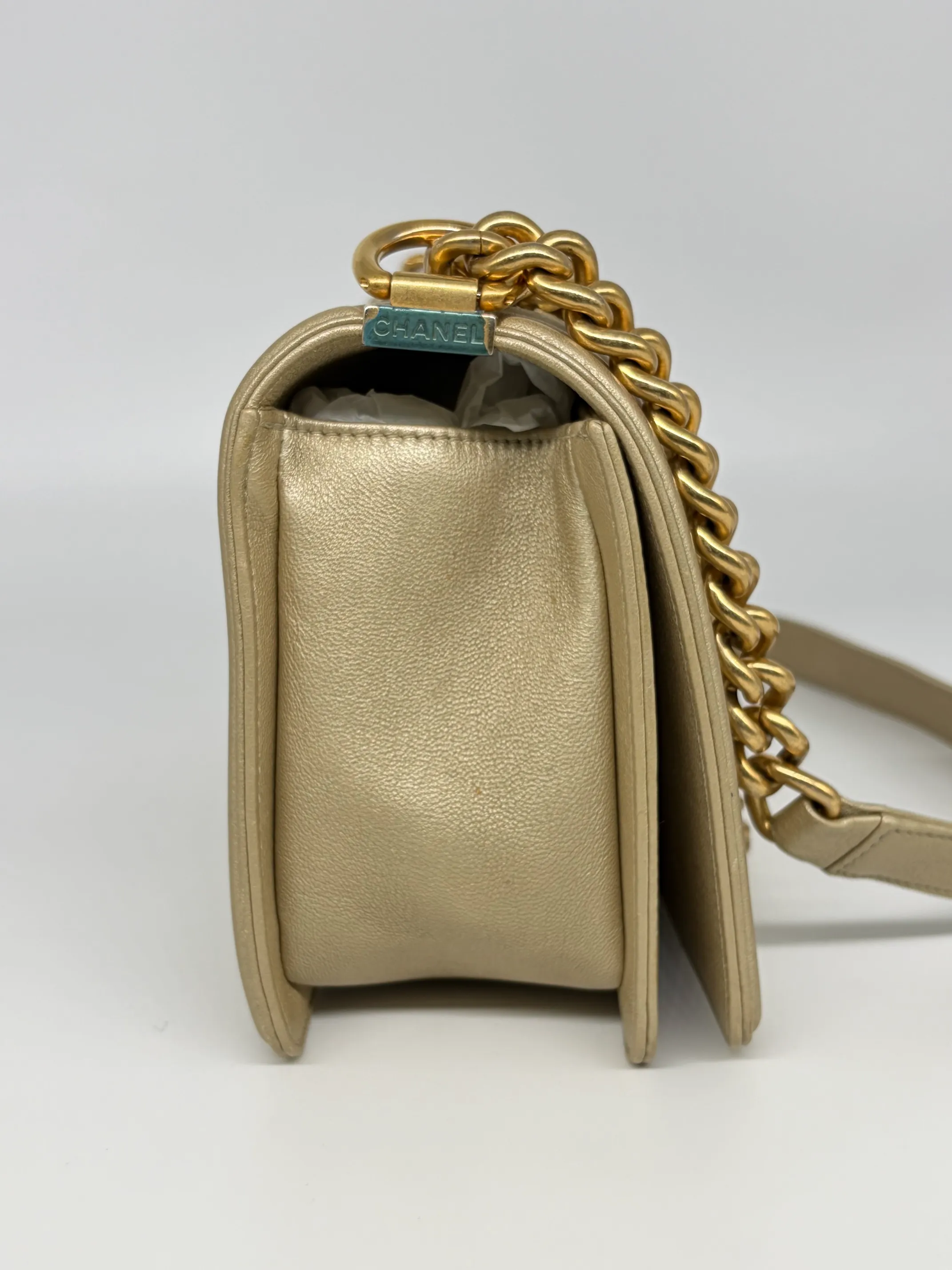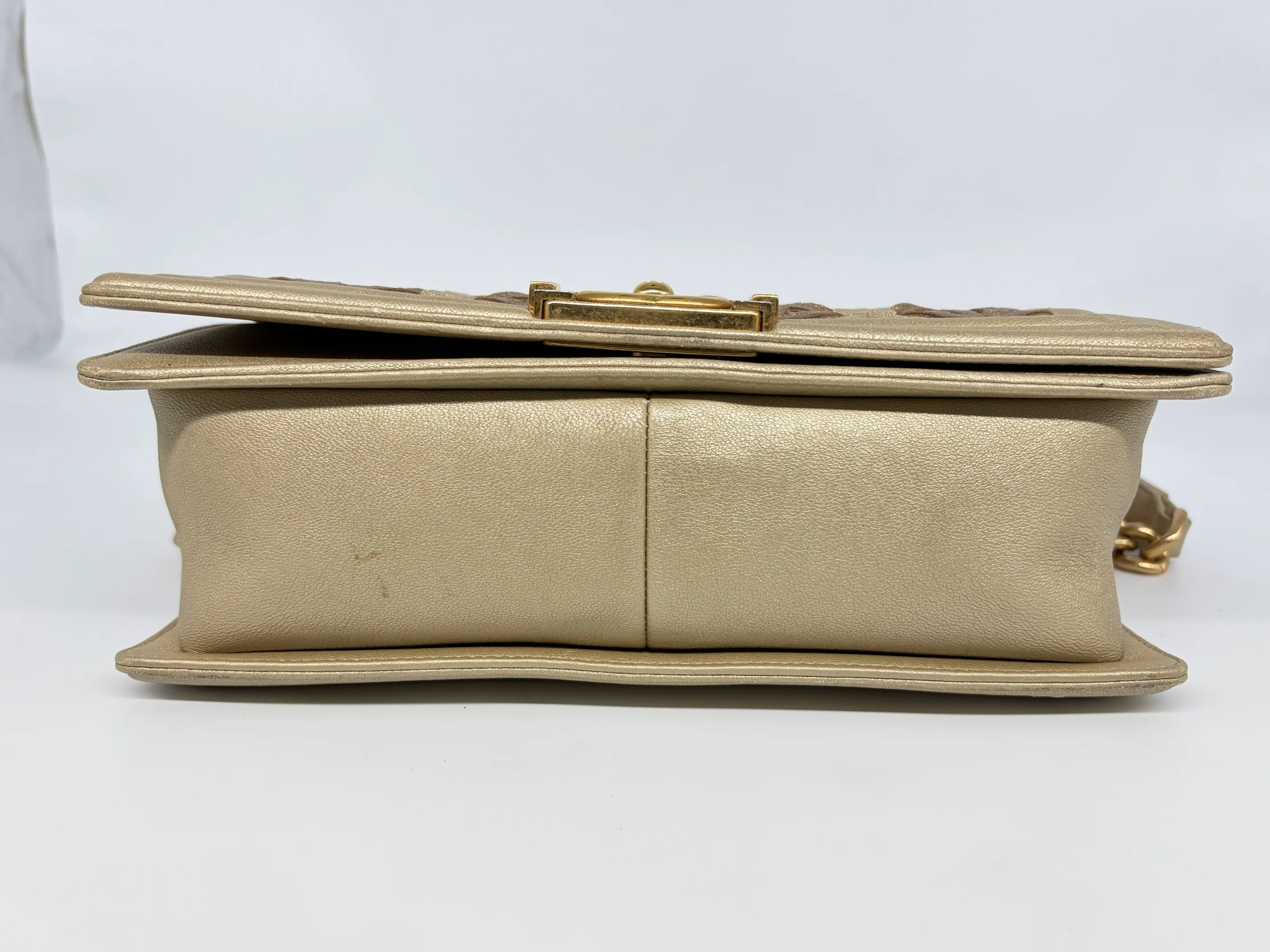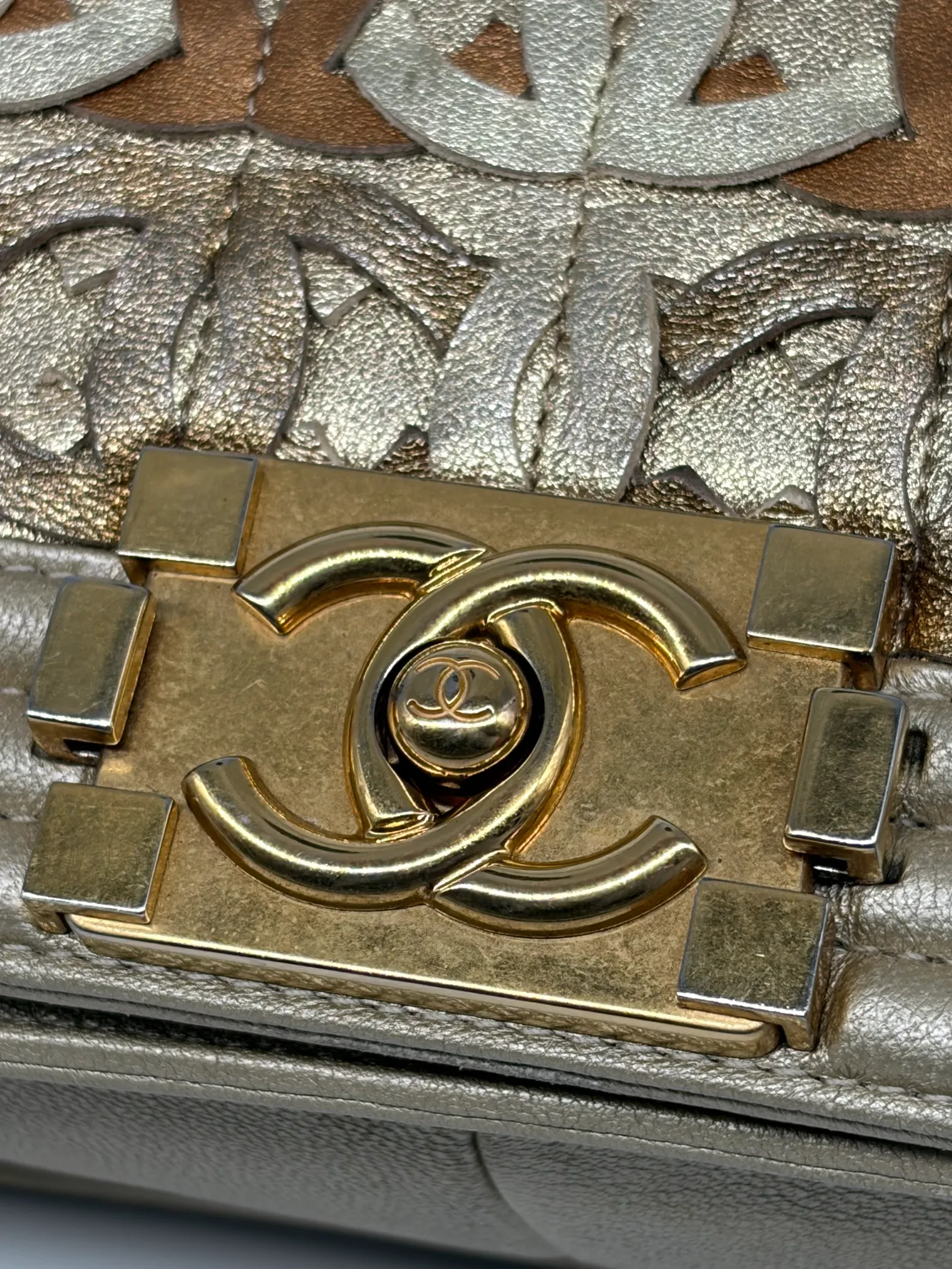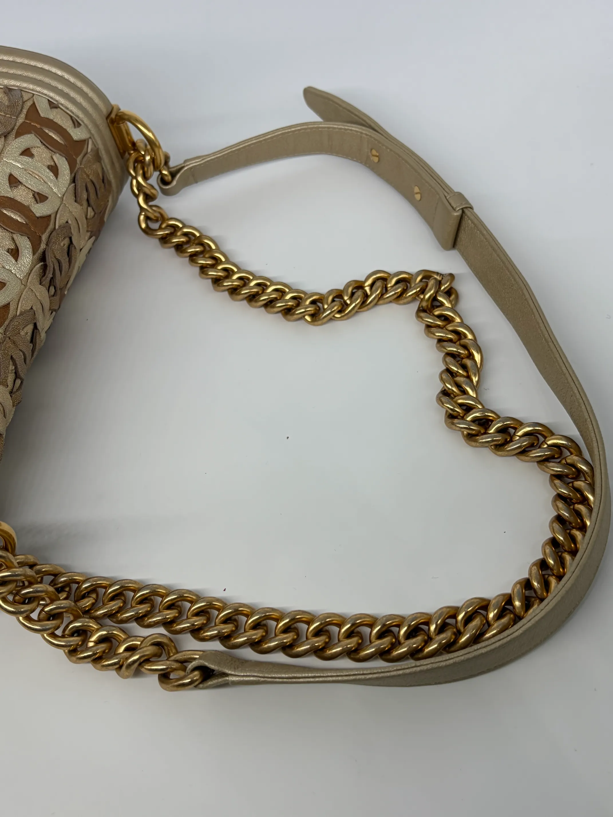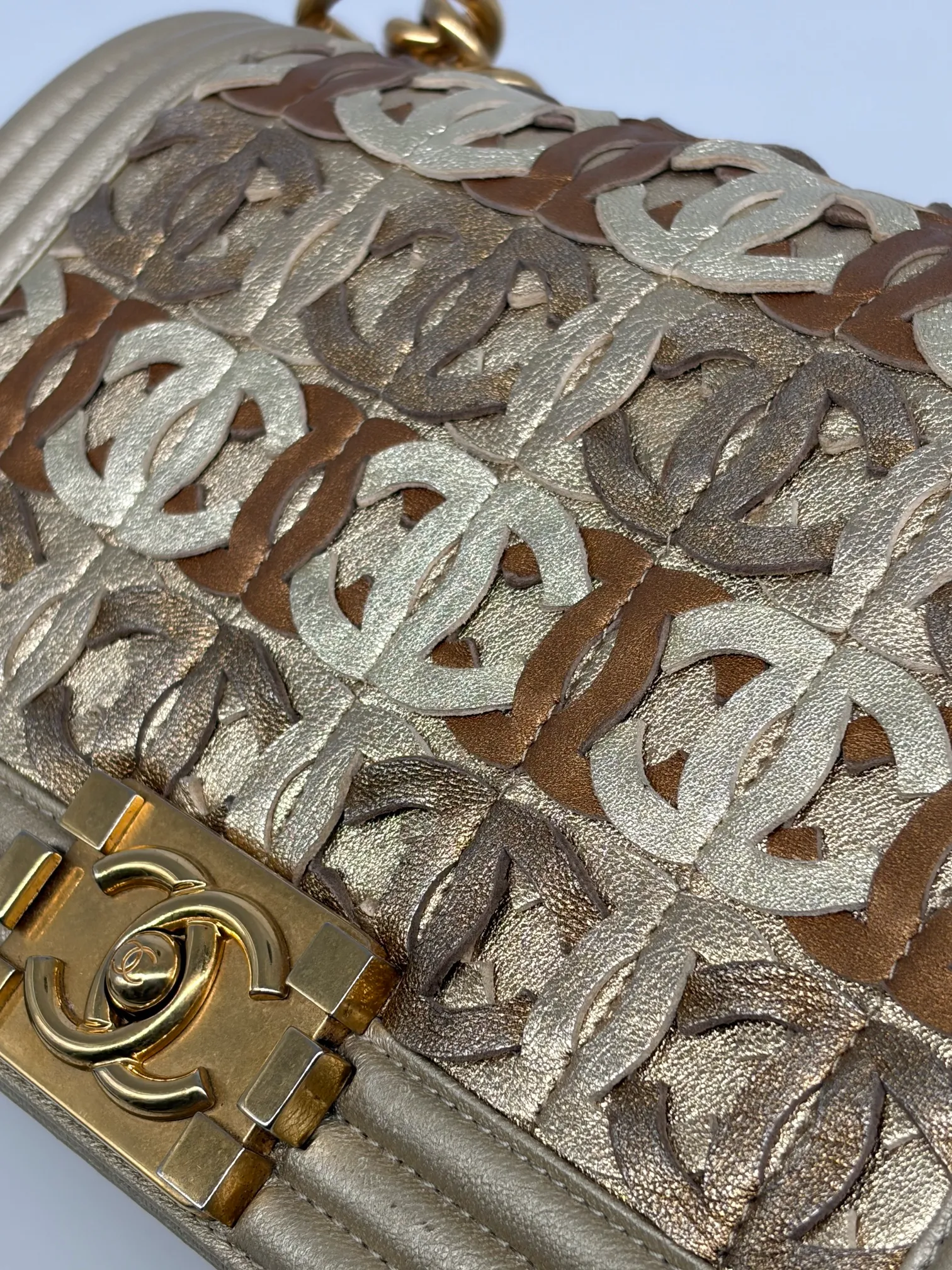 Chanel Gold Cc Cut Out Leather Medium Boy Bag