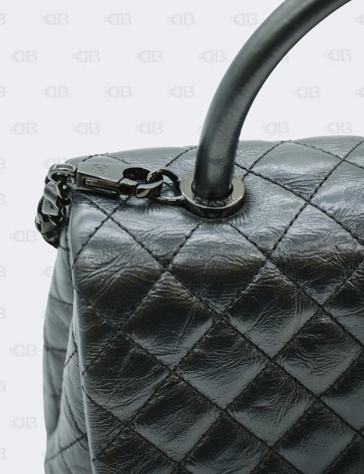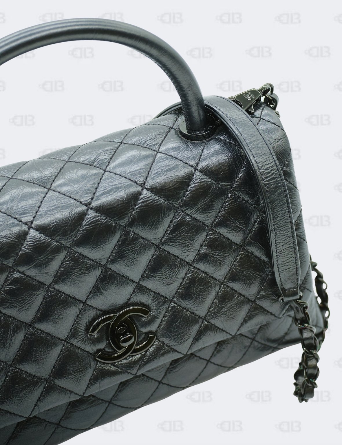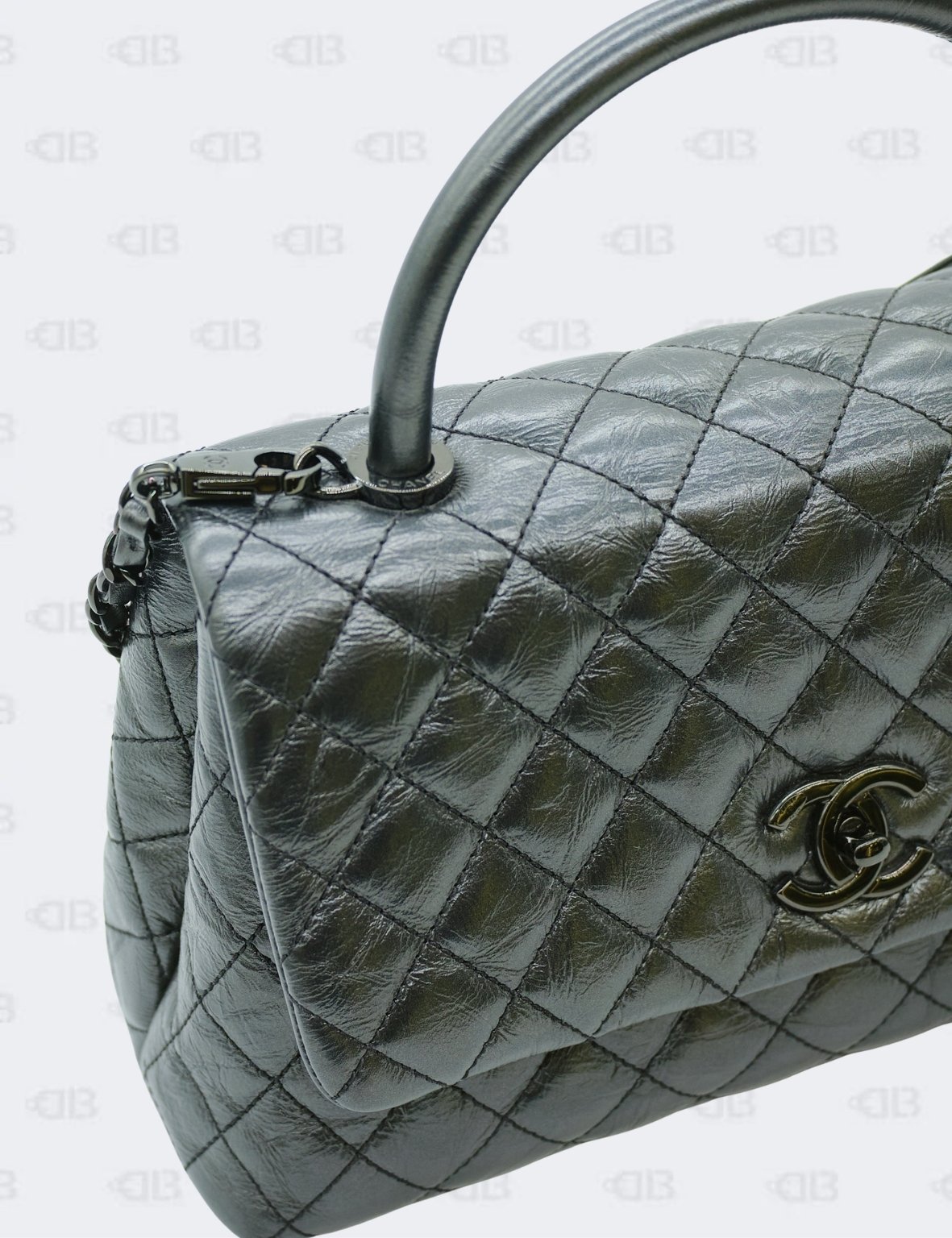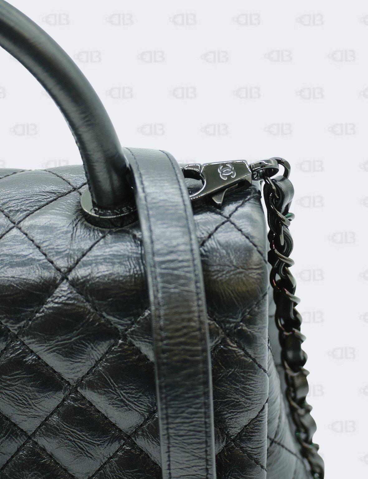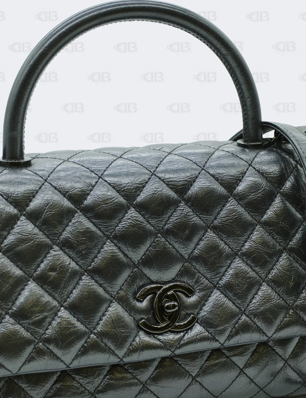 Chanel Gunmetal Quilted Aged Calfskin Medium Coco Top Handle Bag