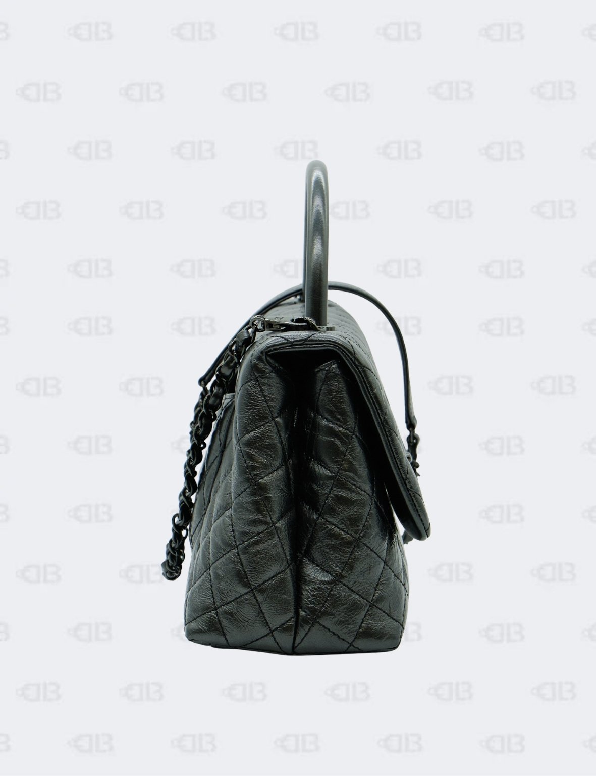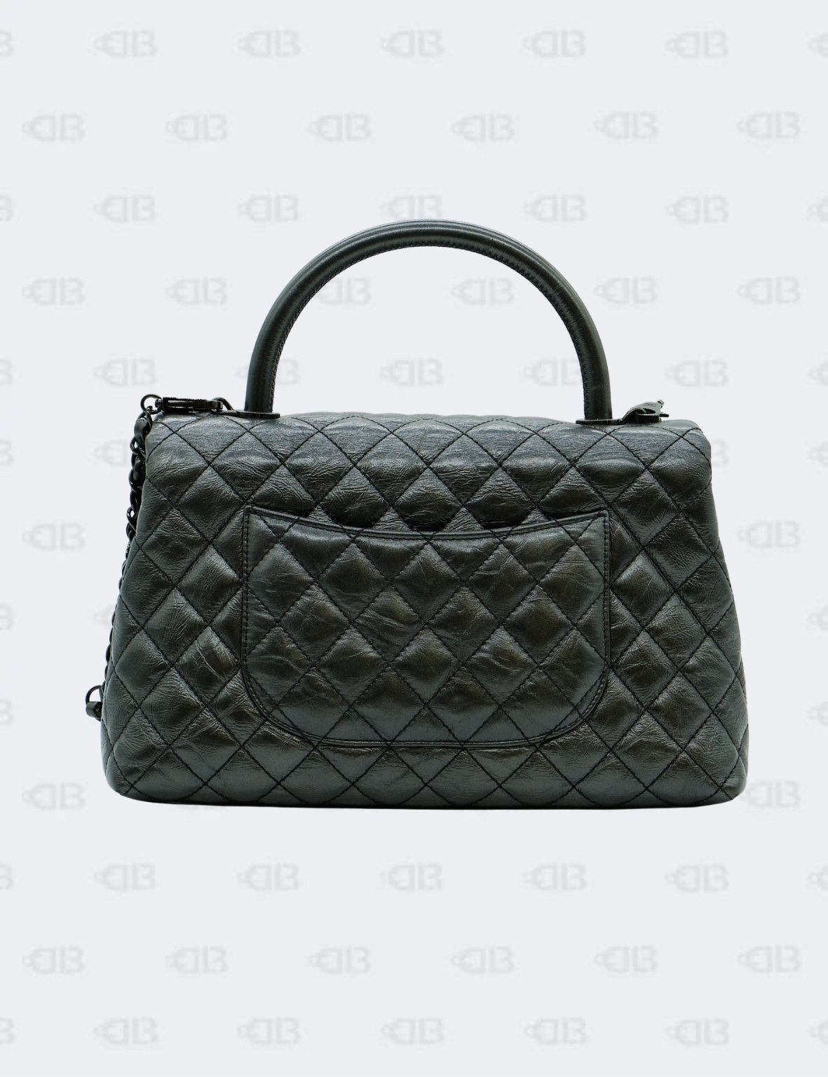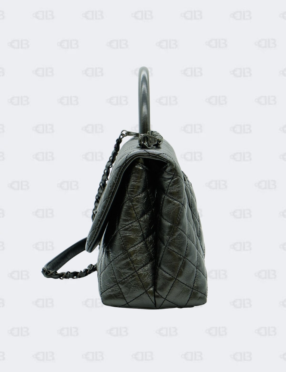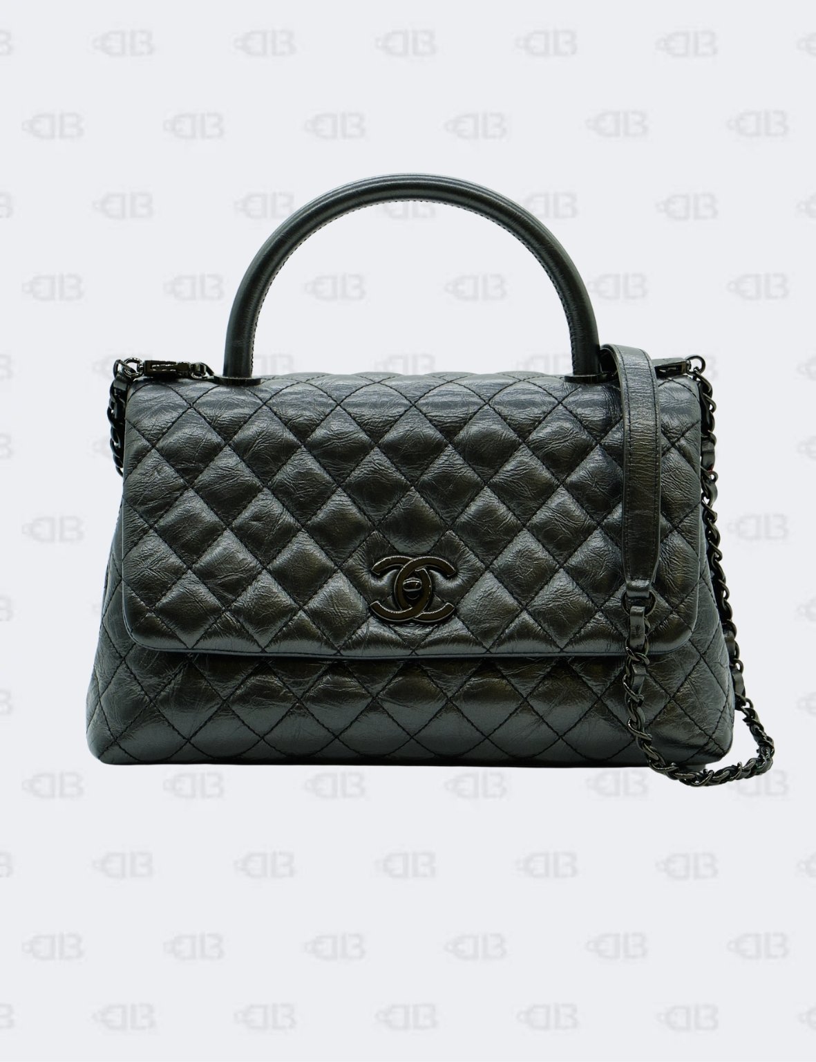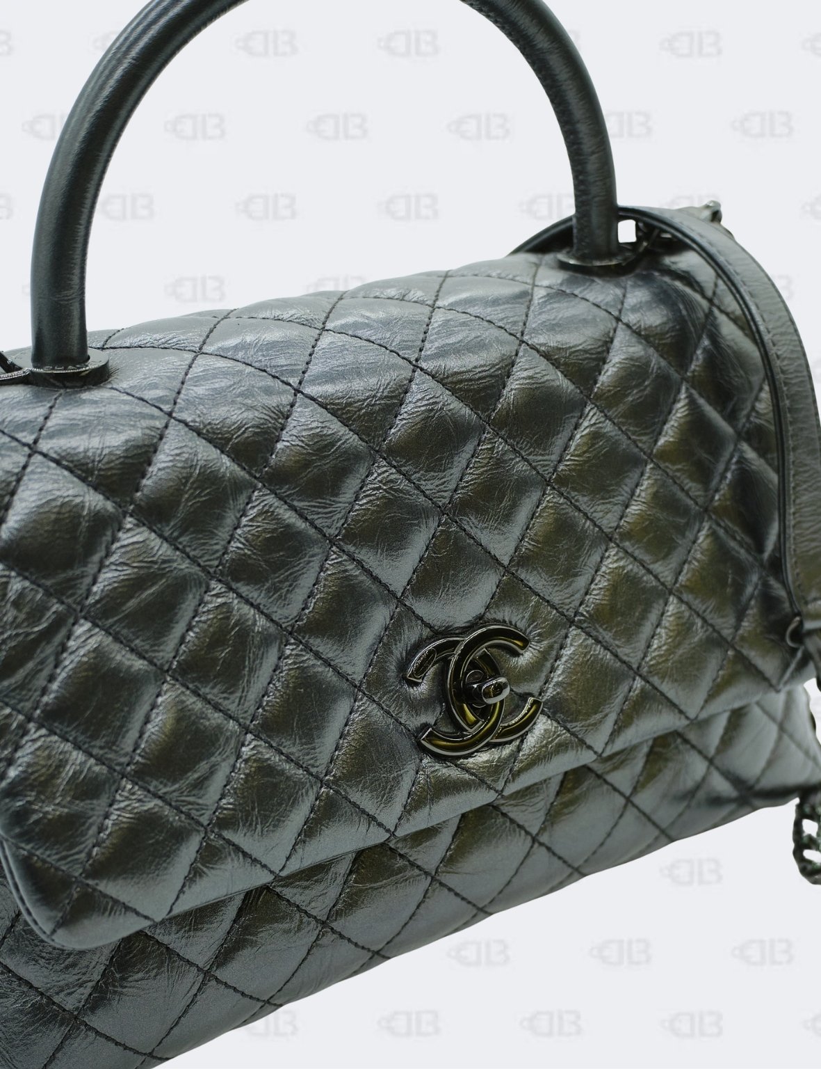 Chanel Gunmetal Quilted Aged Calfskin Medium Coco Top Handle Bag