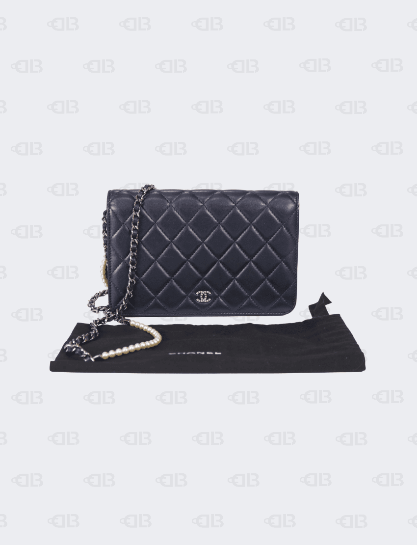 Chanel Limited Pearl Strap Wallet On Chain in Navy Lambskin