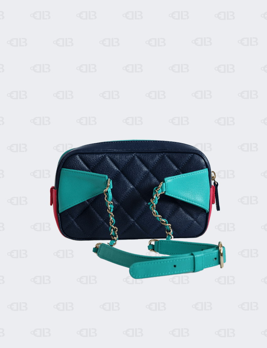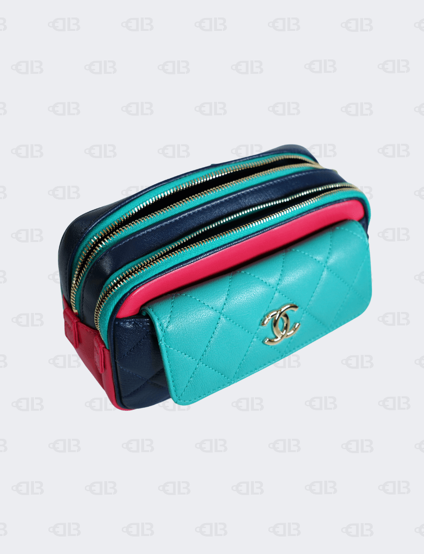 Chanel Goatskin Quilted Tri-Color In & Out Waist Bag Navy Turquoise Pink