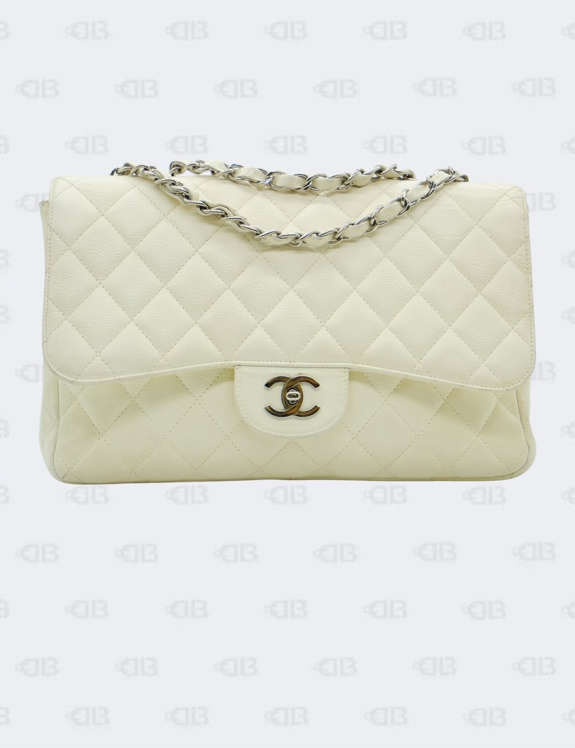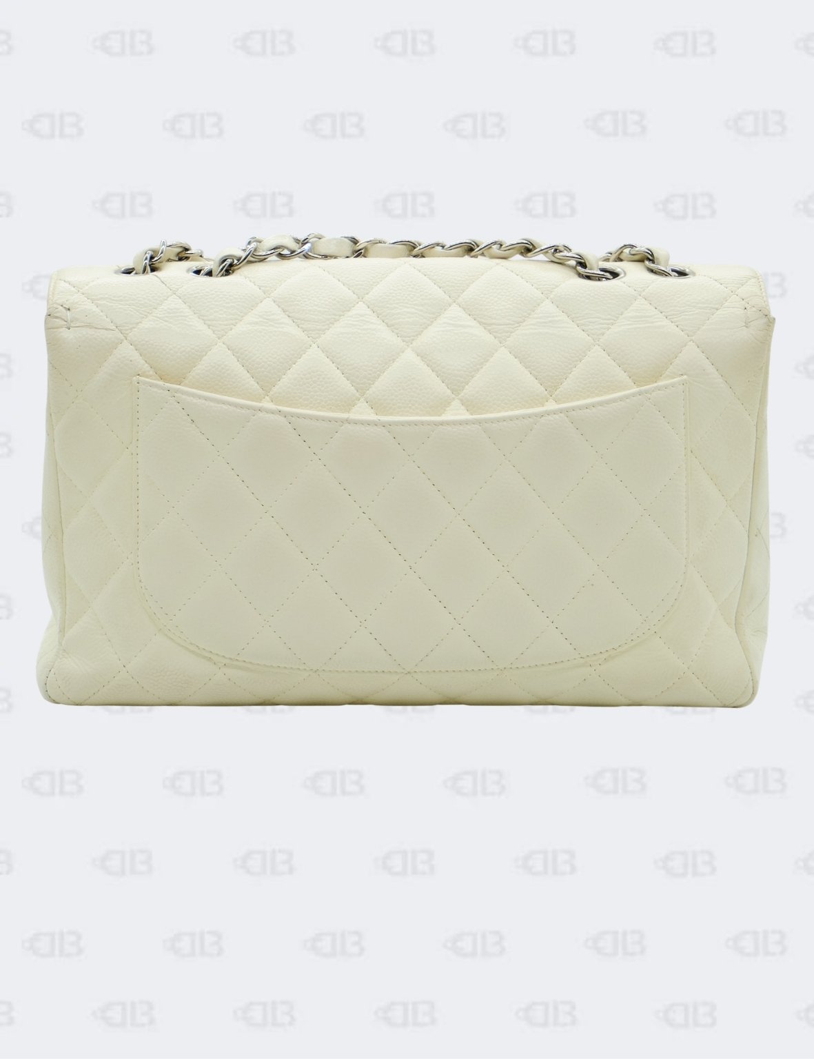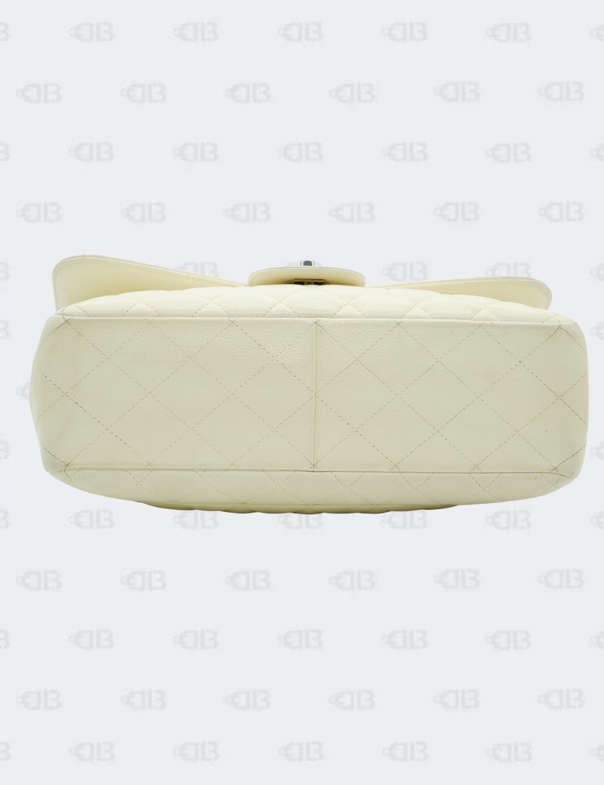 Chanel White Quilted Caviar Jumbo Classic Double Flap Bag