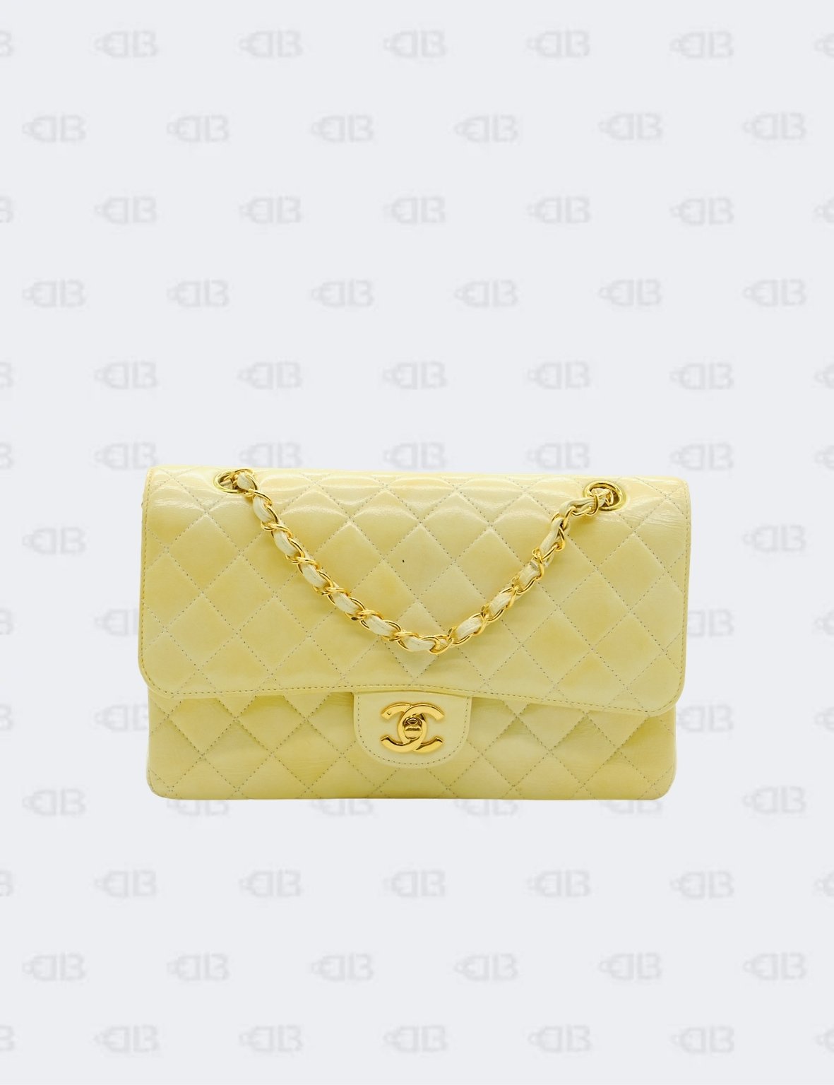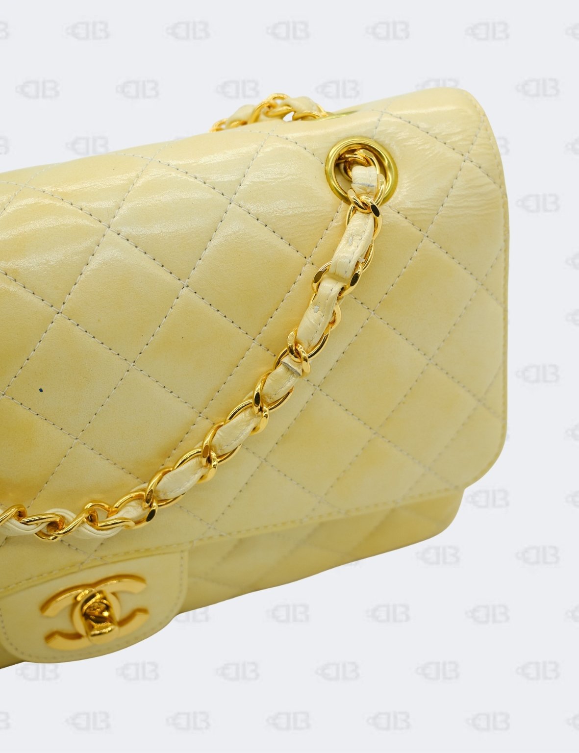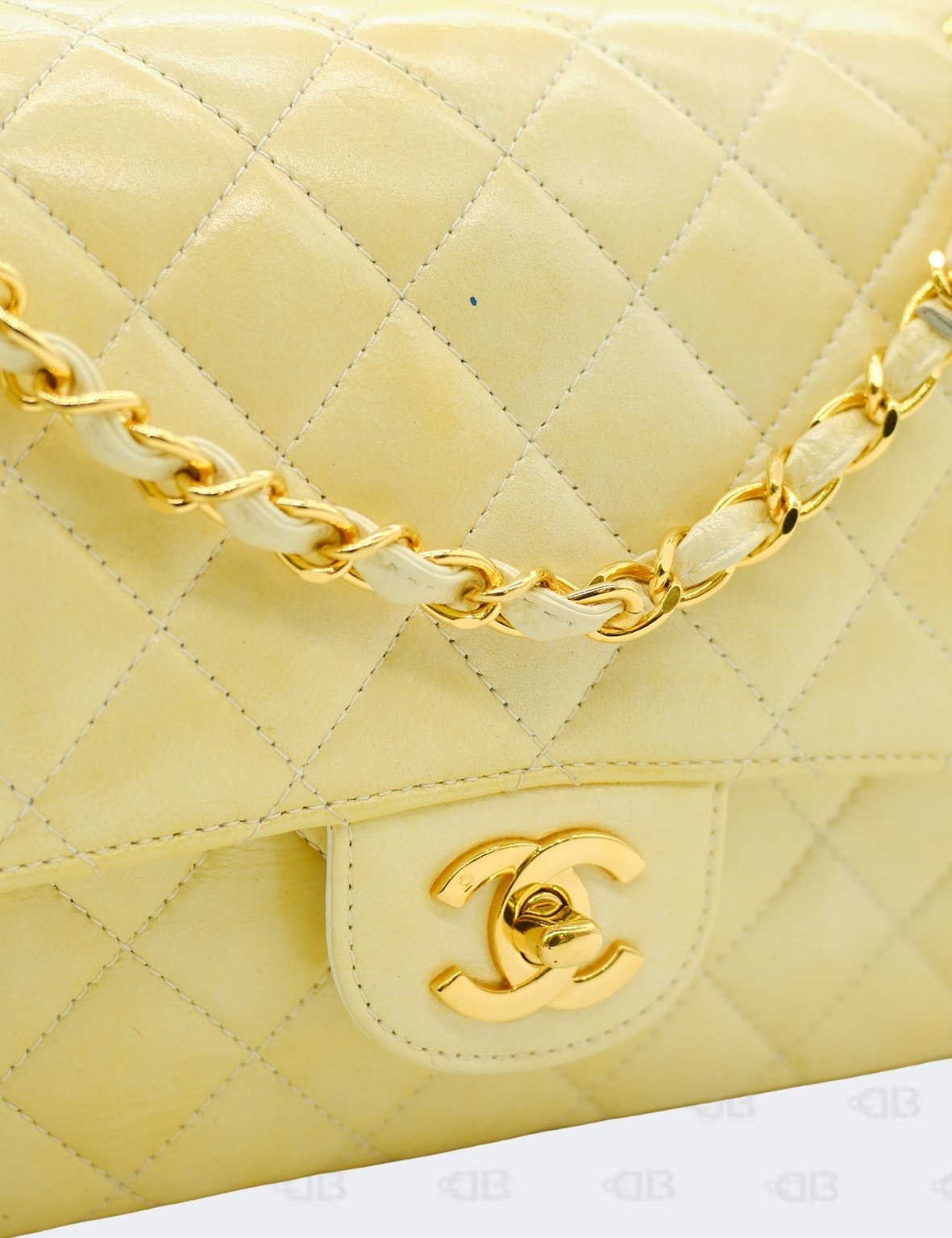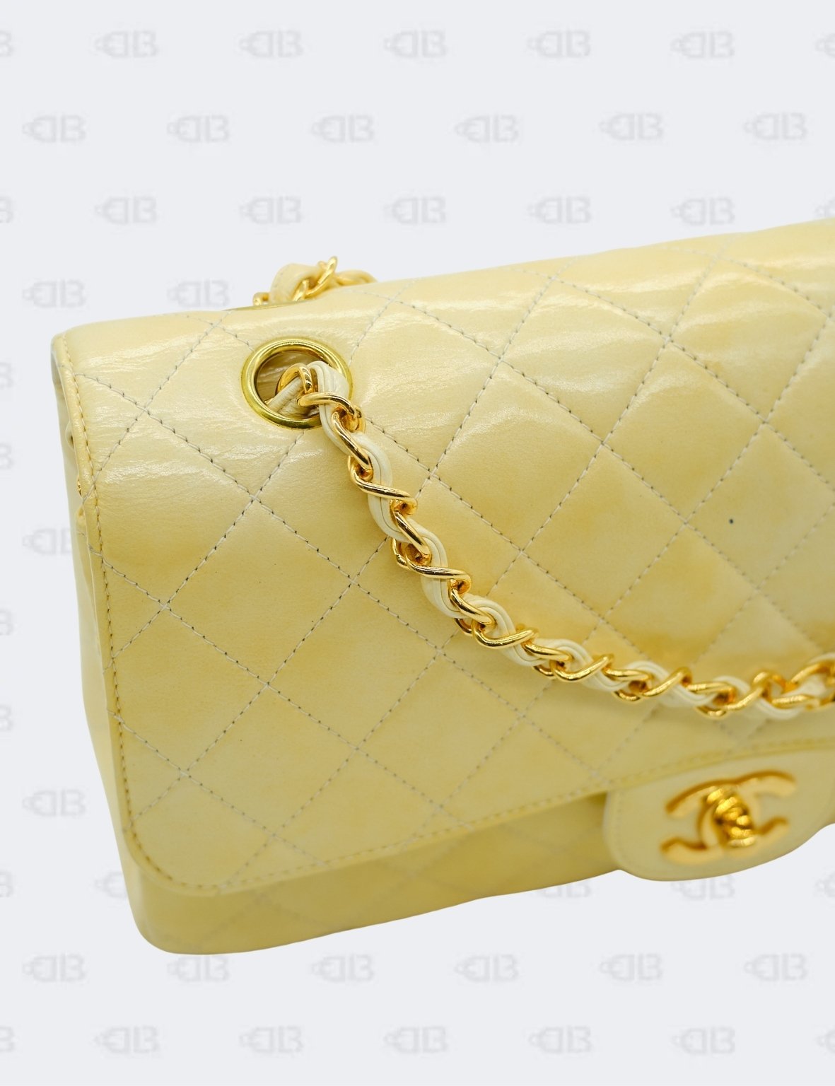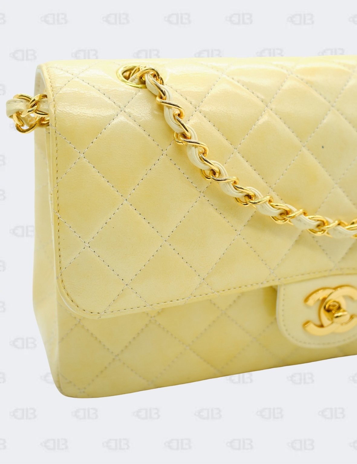 Chanel Yellow Iridescent Glazed Calfskin Medium Classic Double Flap Bag