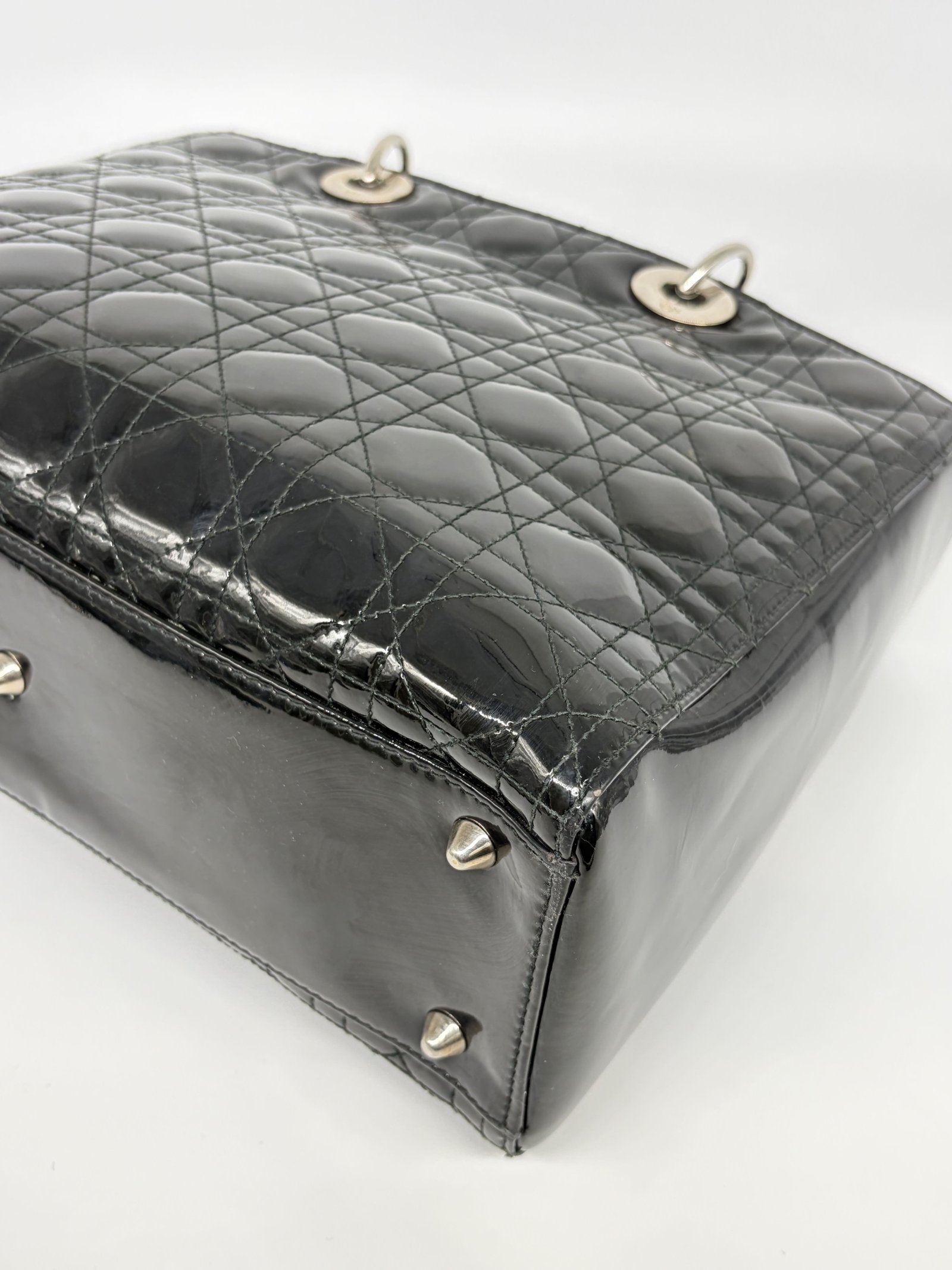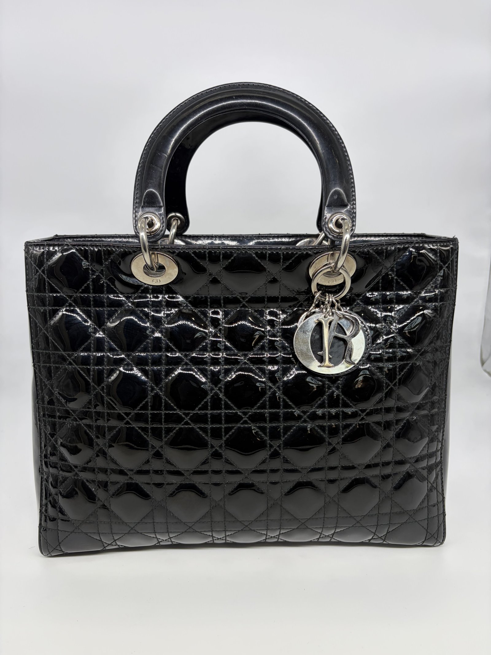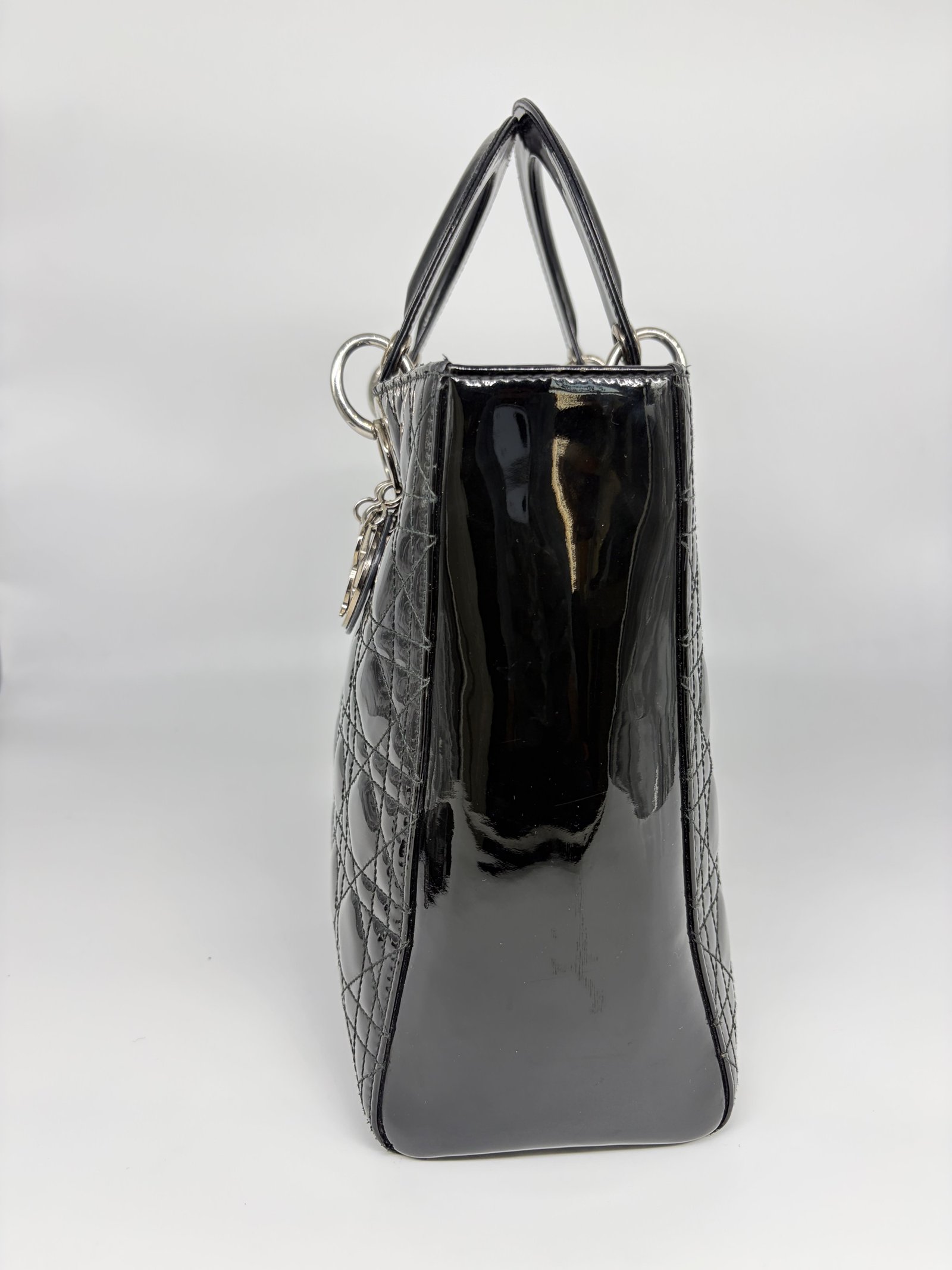 Christian Dior Black Patent Bag Large Lady Dior