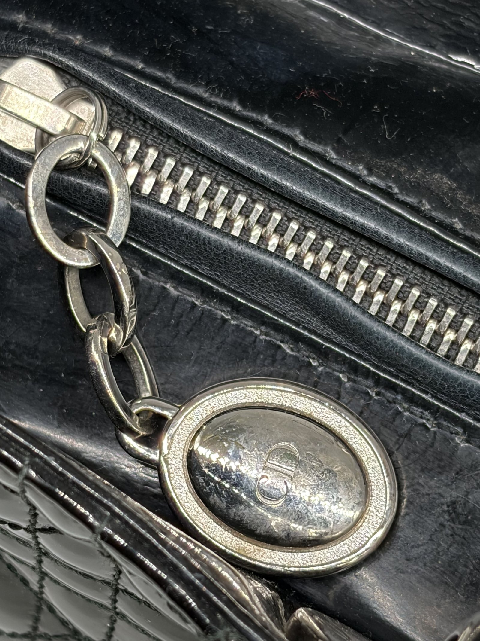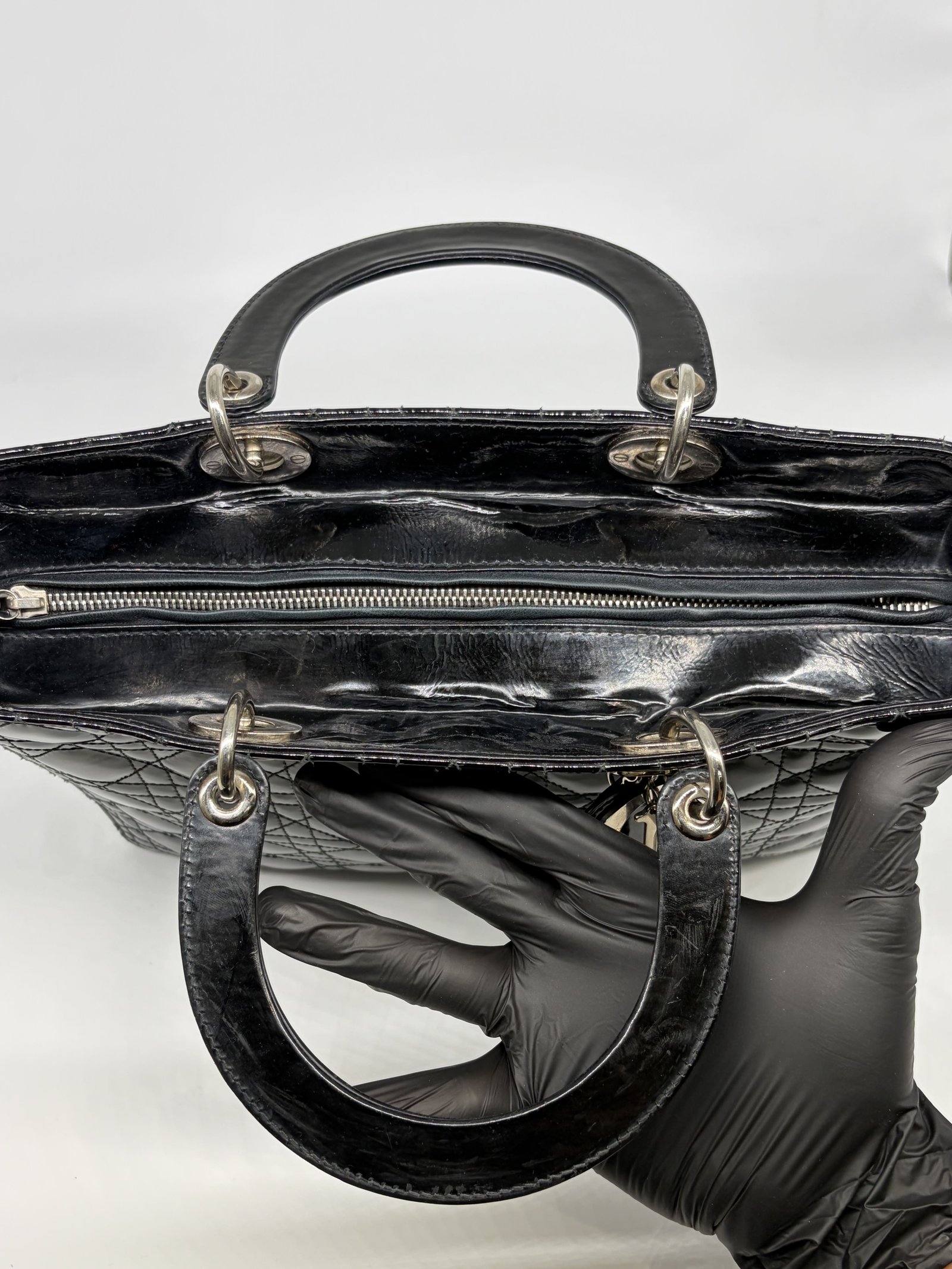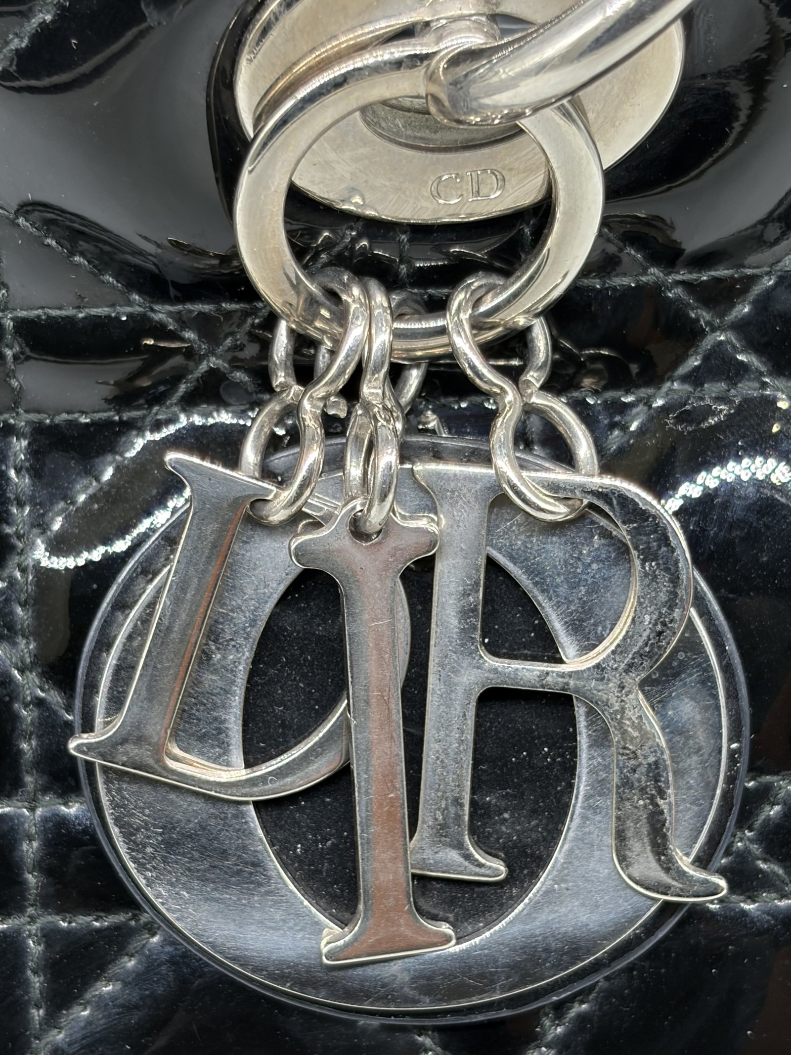 Christian Dior Black Patent Bag Large Lady Dior