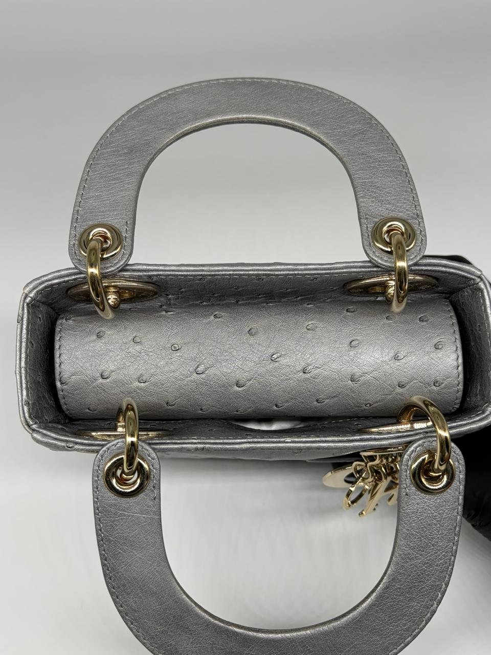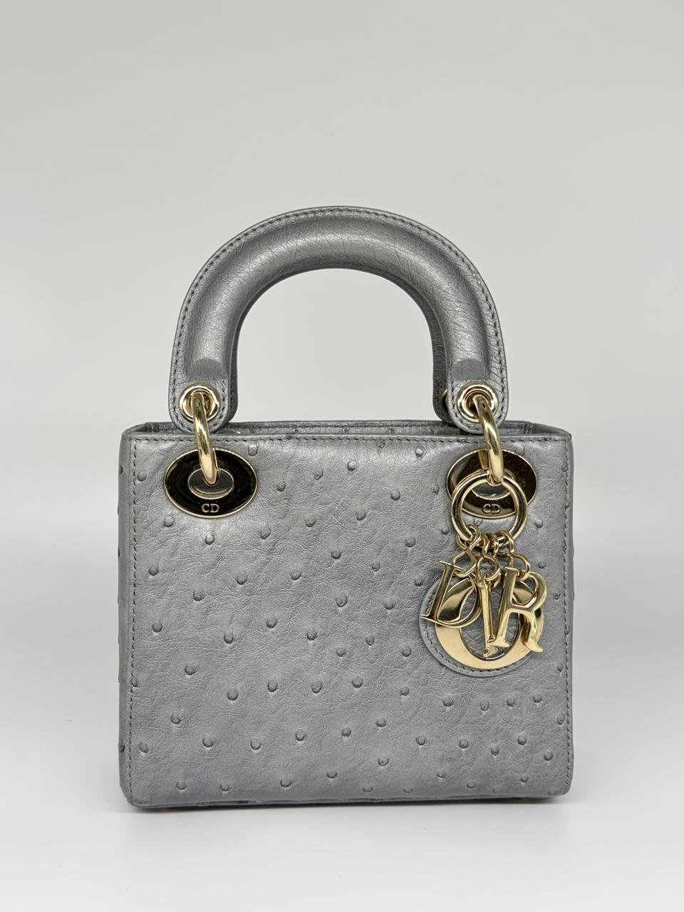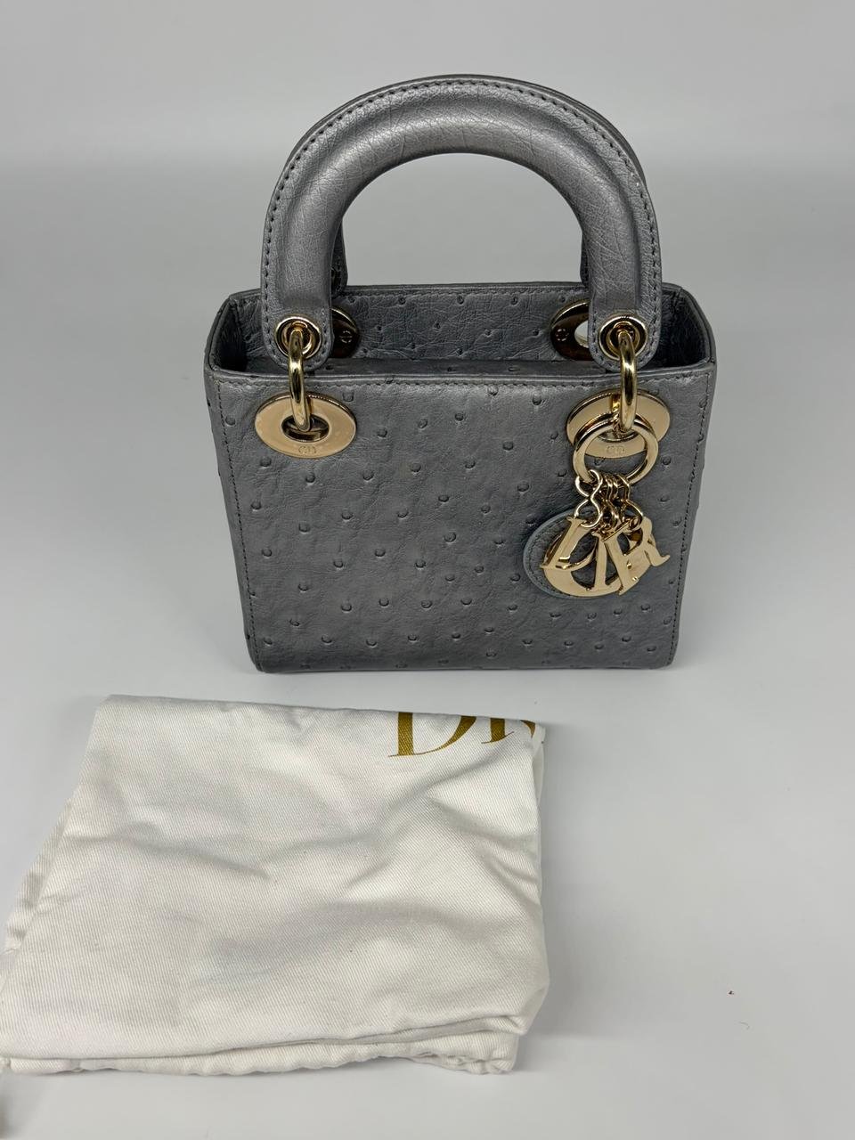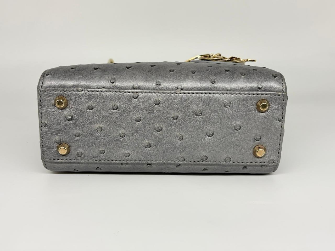 Christian Dior Grey Color Ostrich Mini Lady Dior Bag