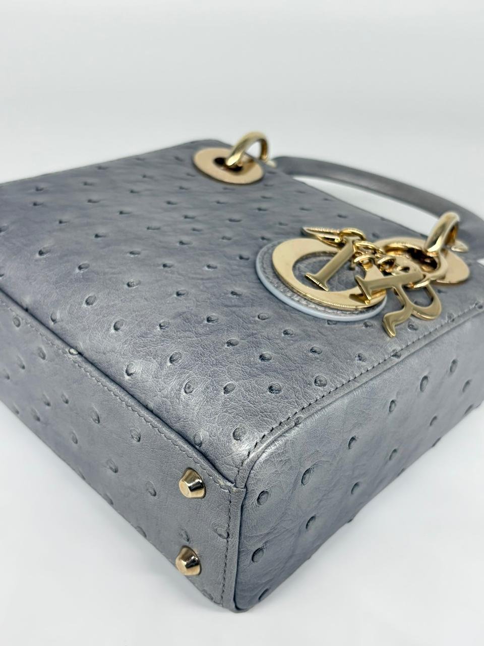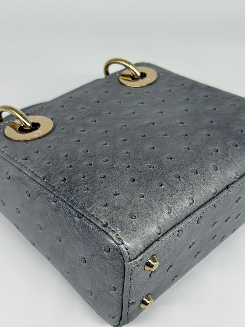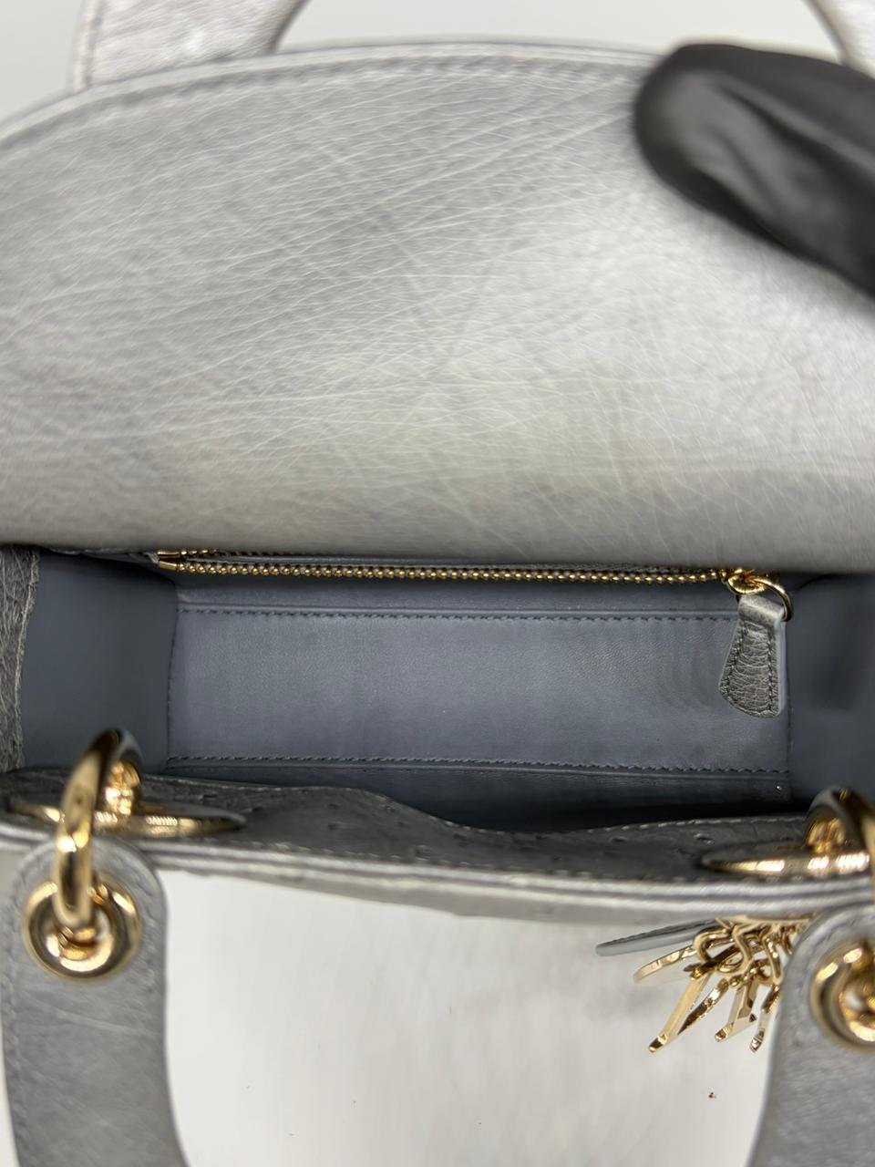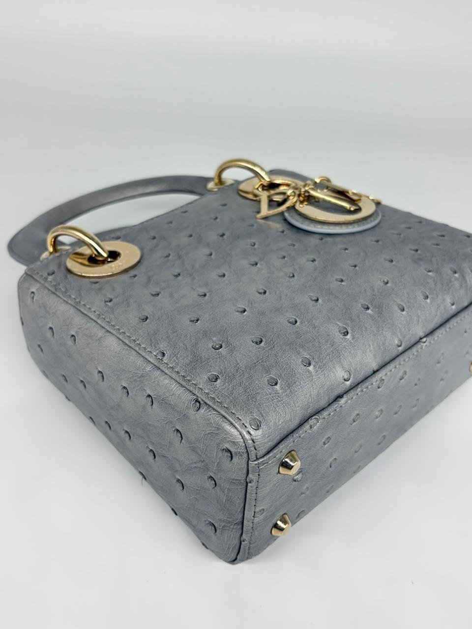 Christian Dior Grey Color Ostrich Mini Lady Dior Bag
