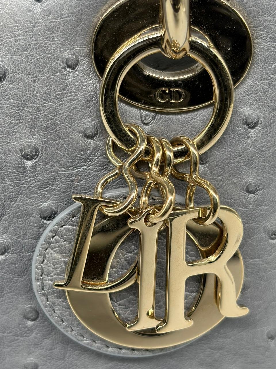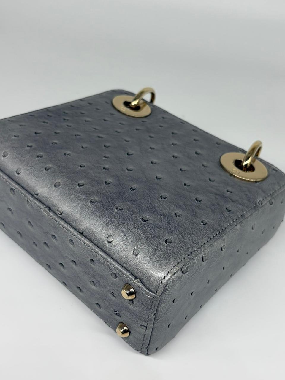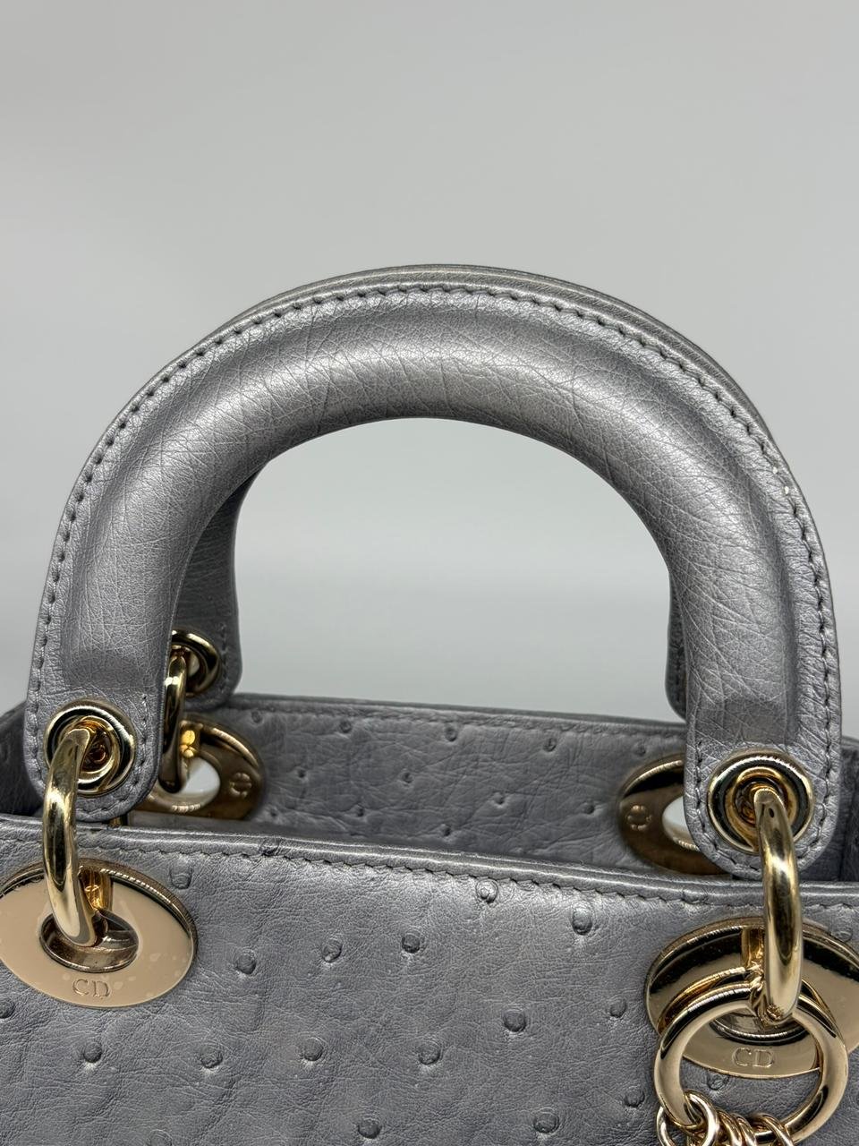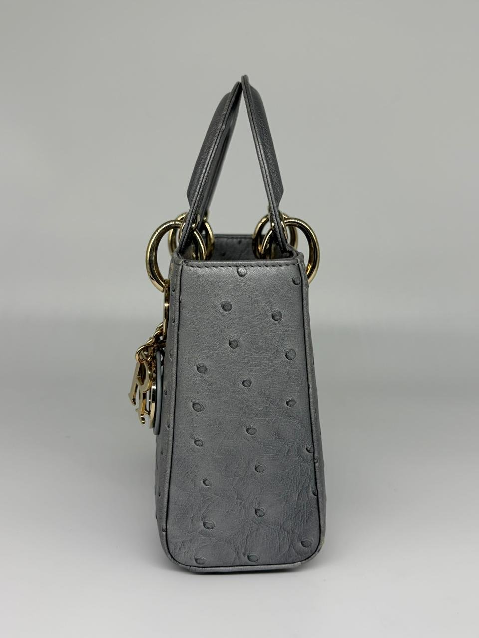 Christian Dior Grey Color Ostrich Mini Lady Dior Bag