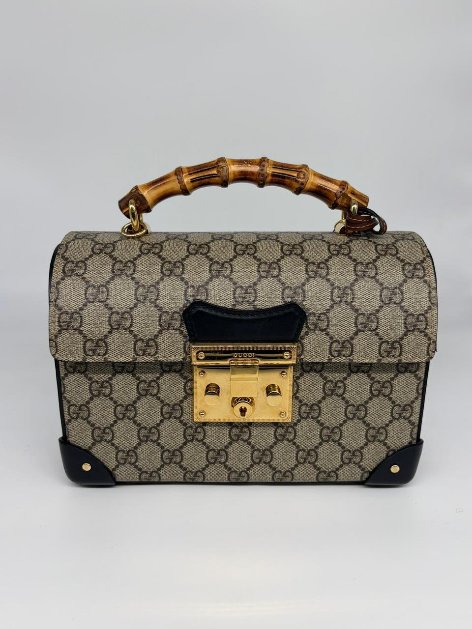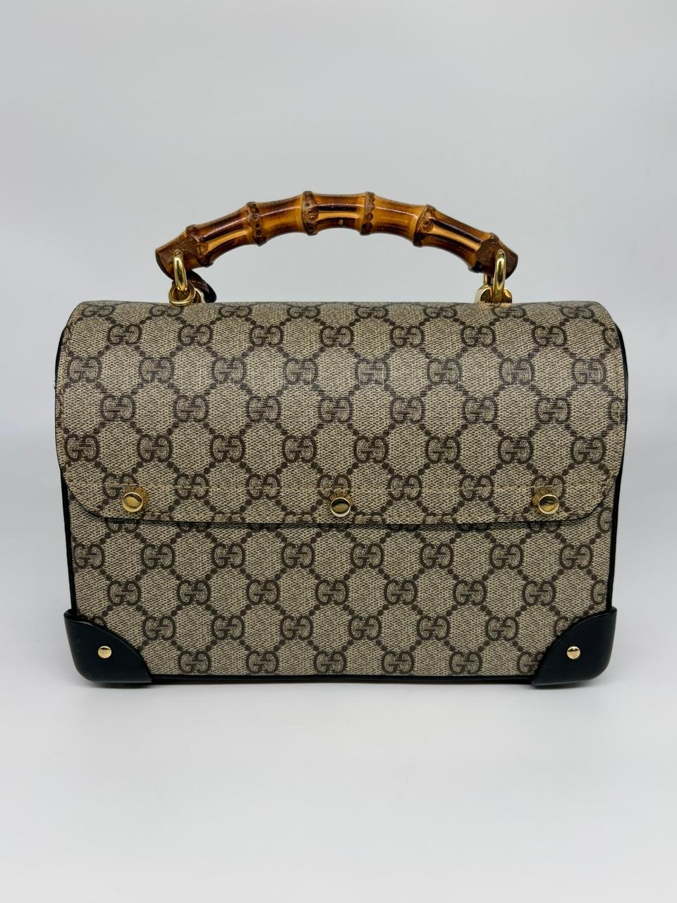 Gucci Bamboo Gg Coated Cnavas Small Shoulder Bag