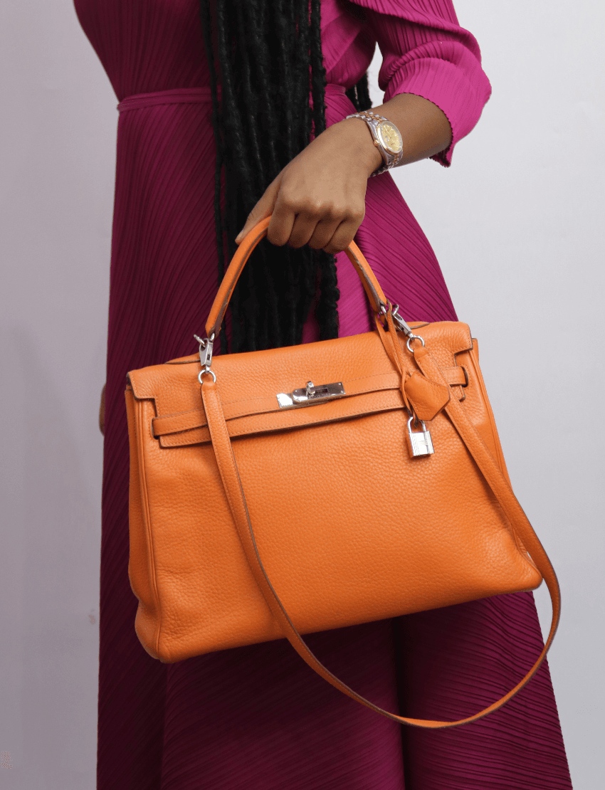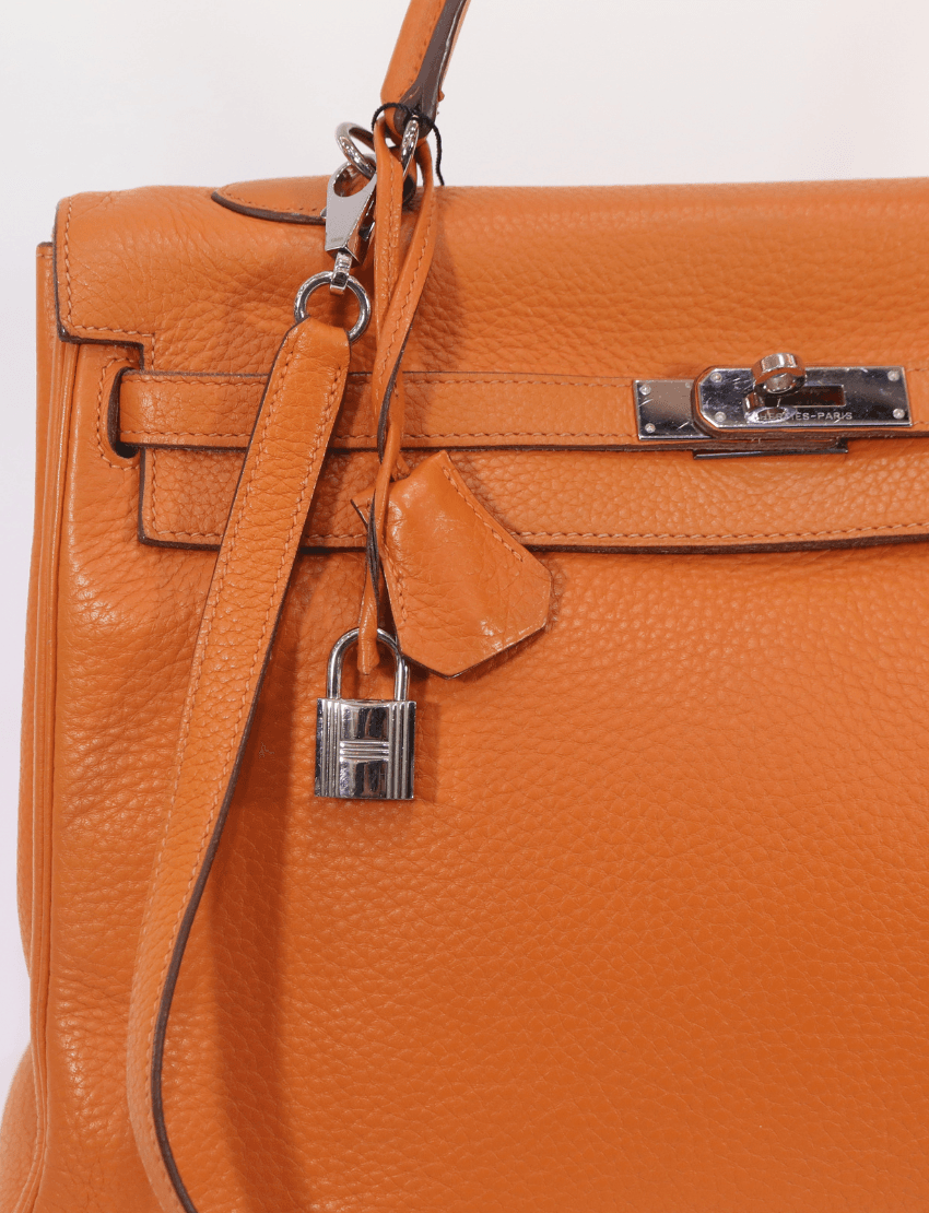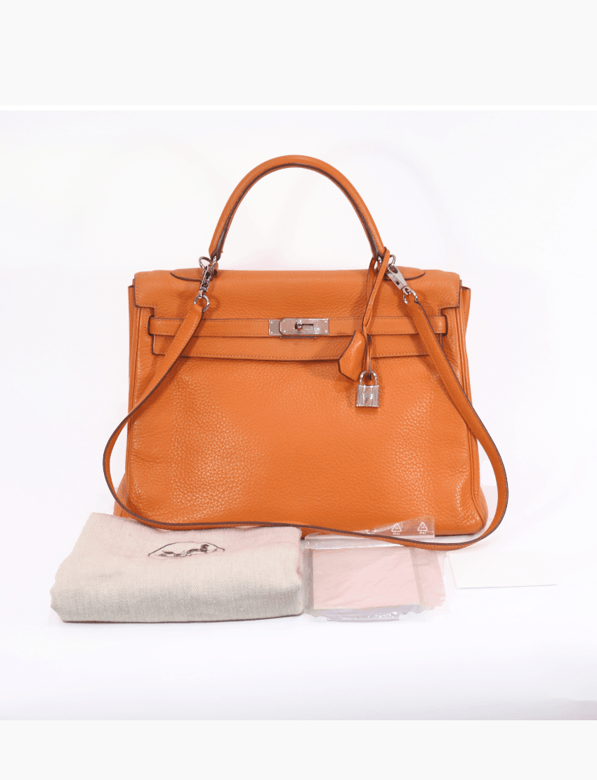Hermes Kelly 35 Orange Togo Leather Palladium Hardware