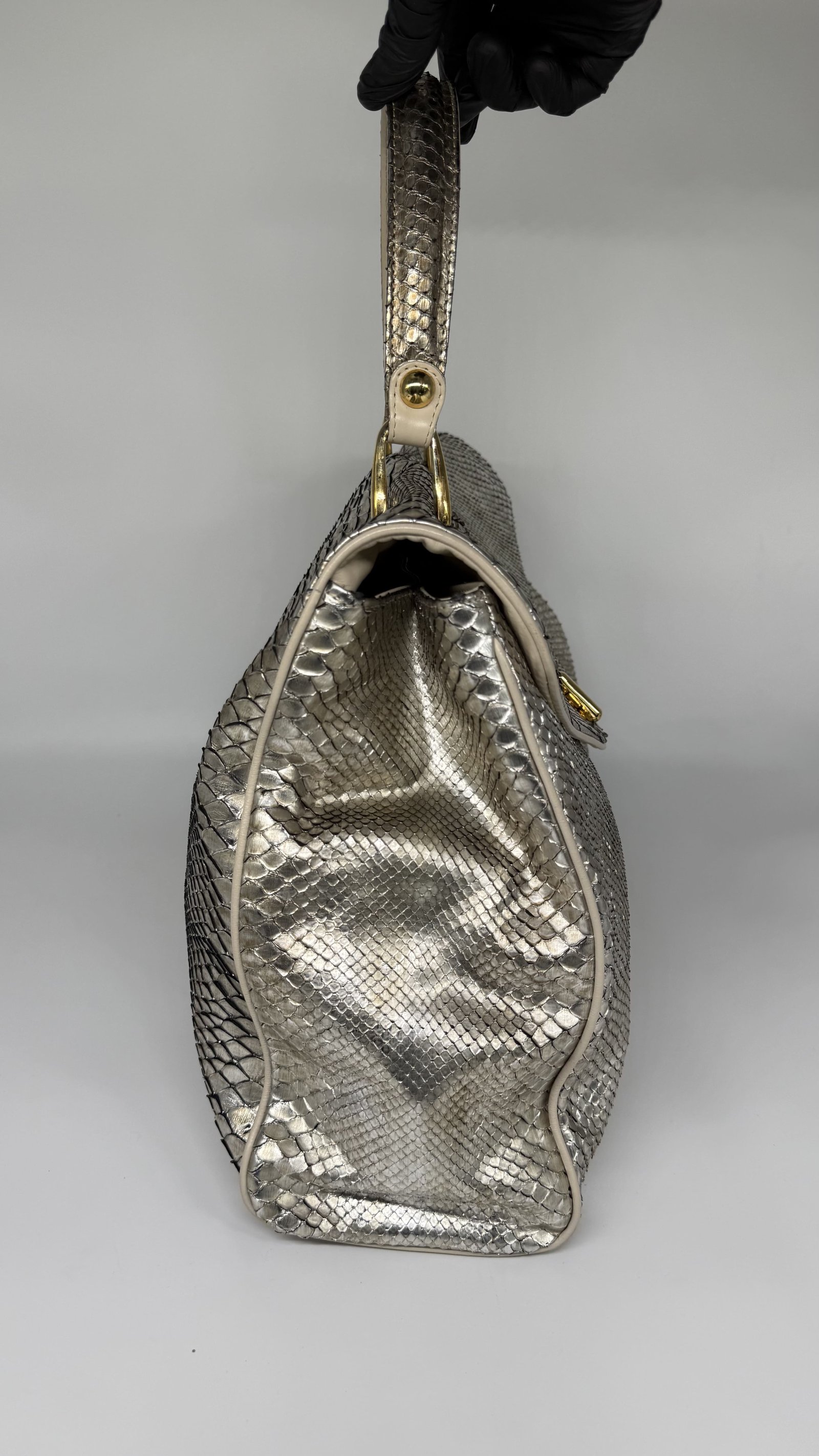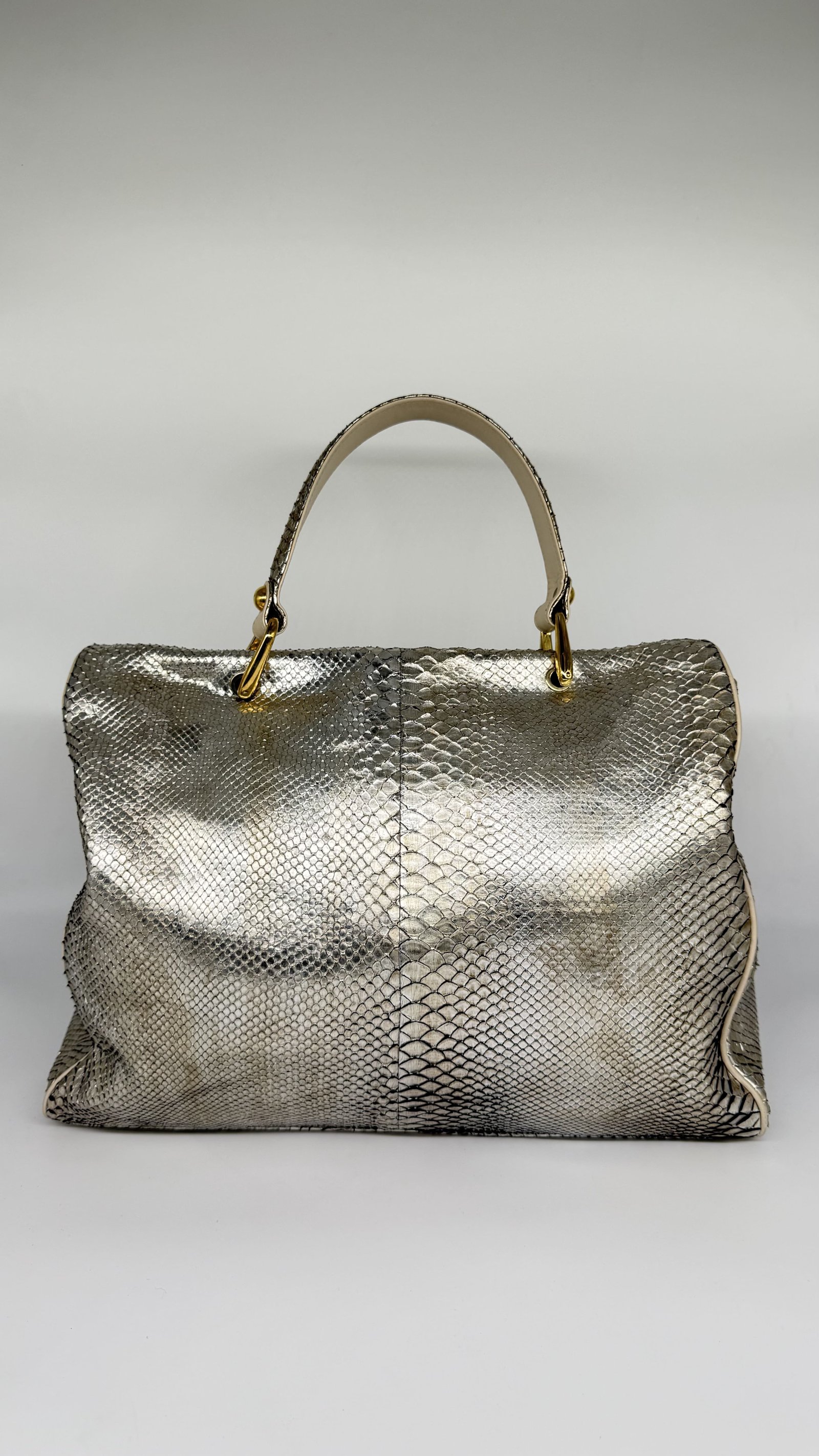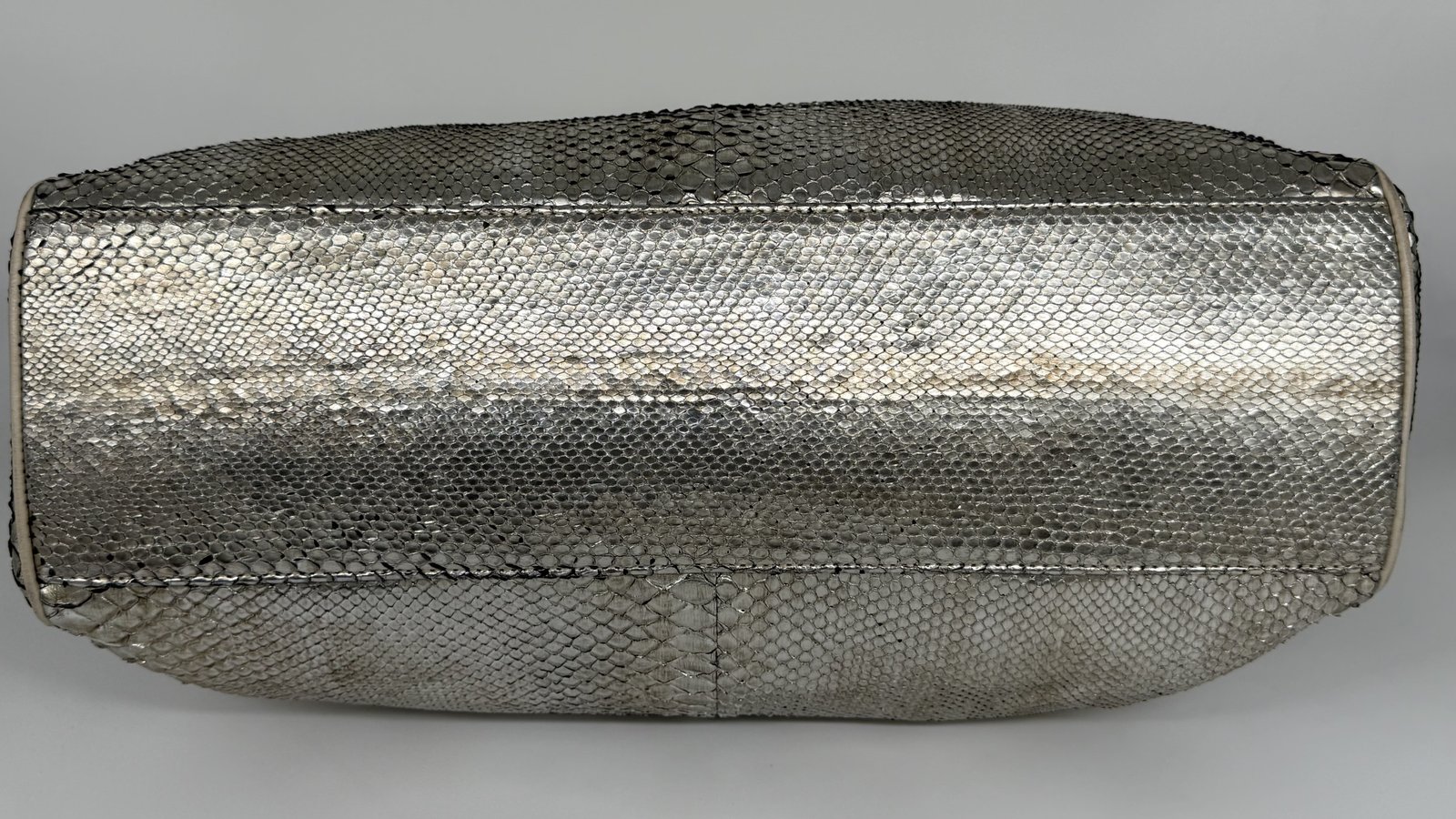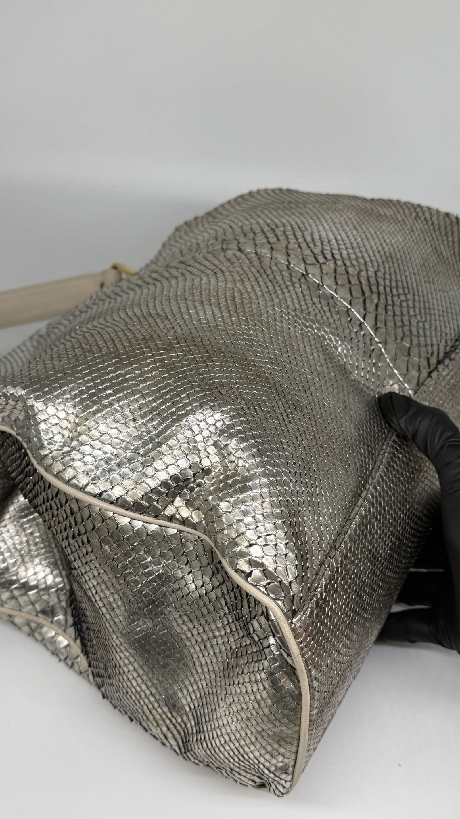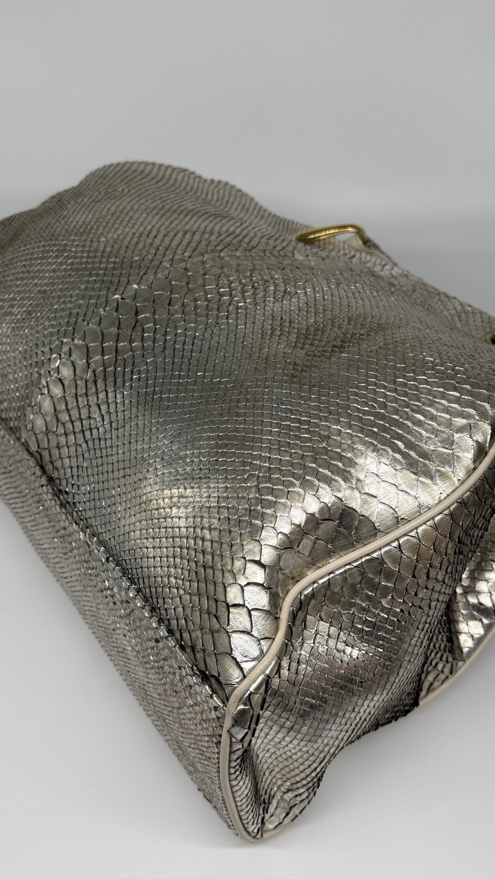 Jane August Metallic Silver Python Handbag