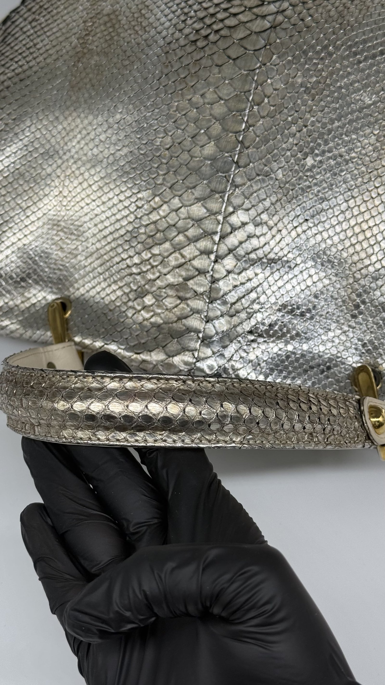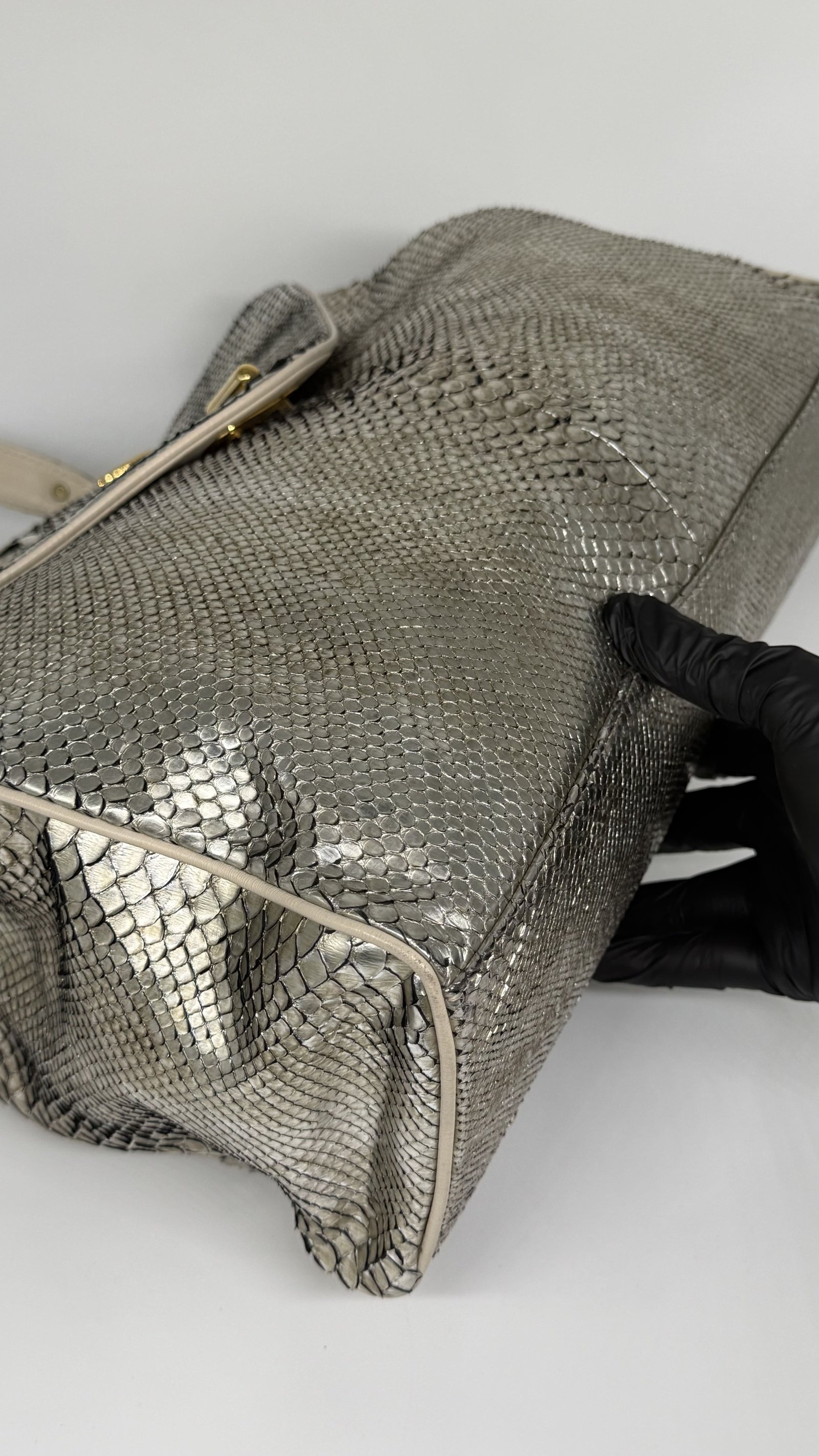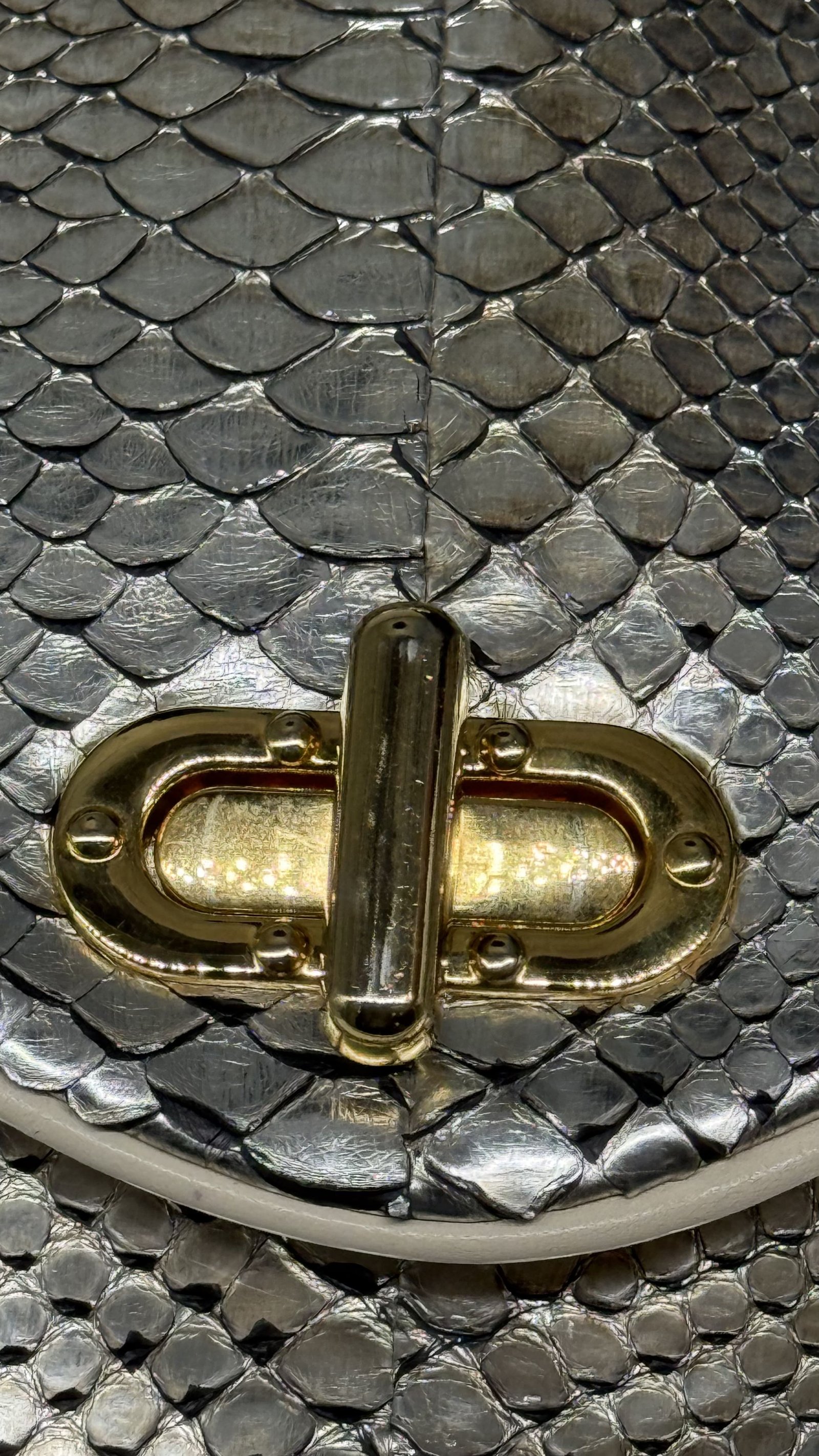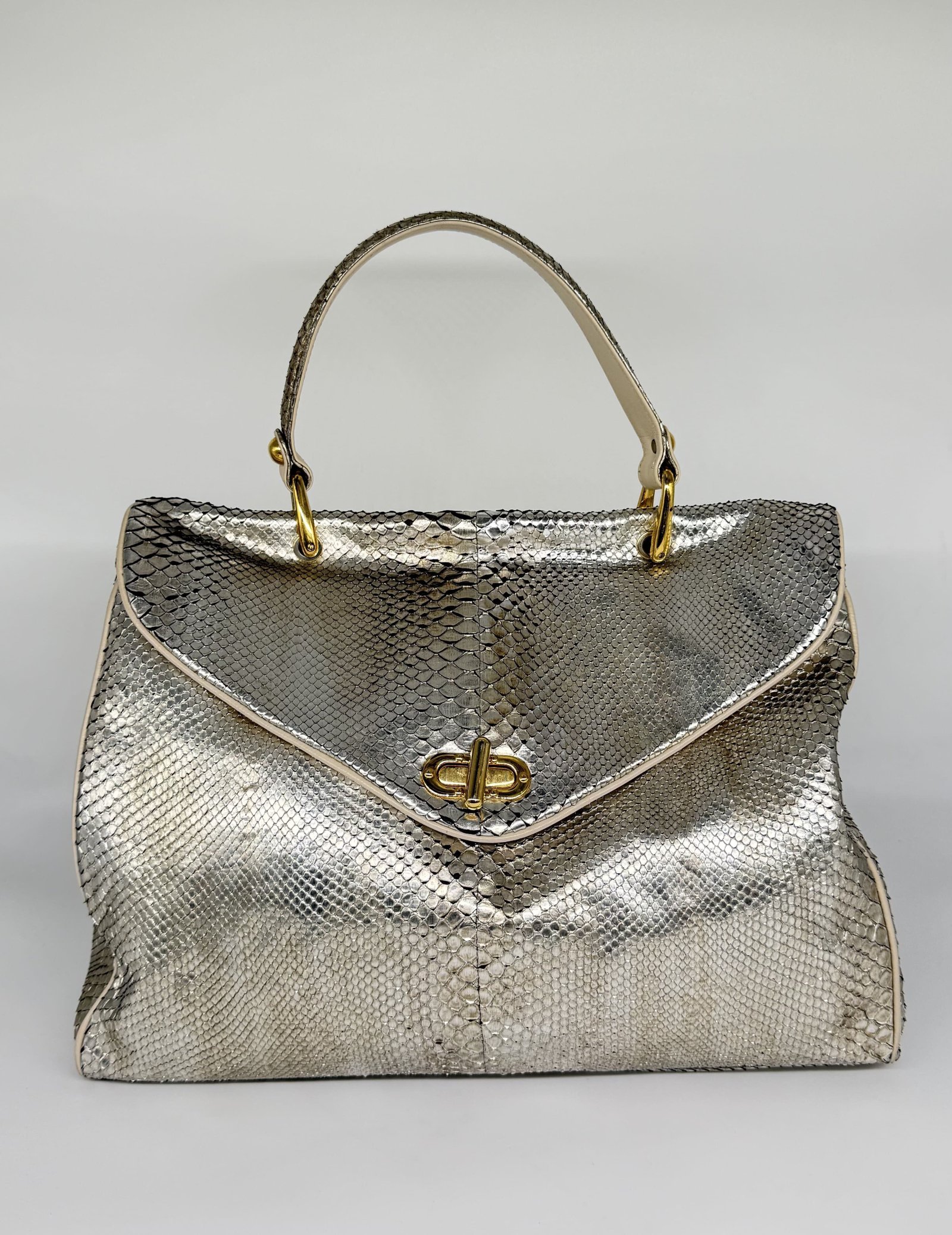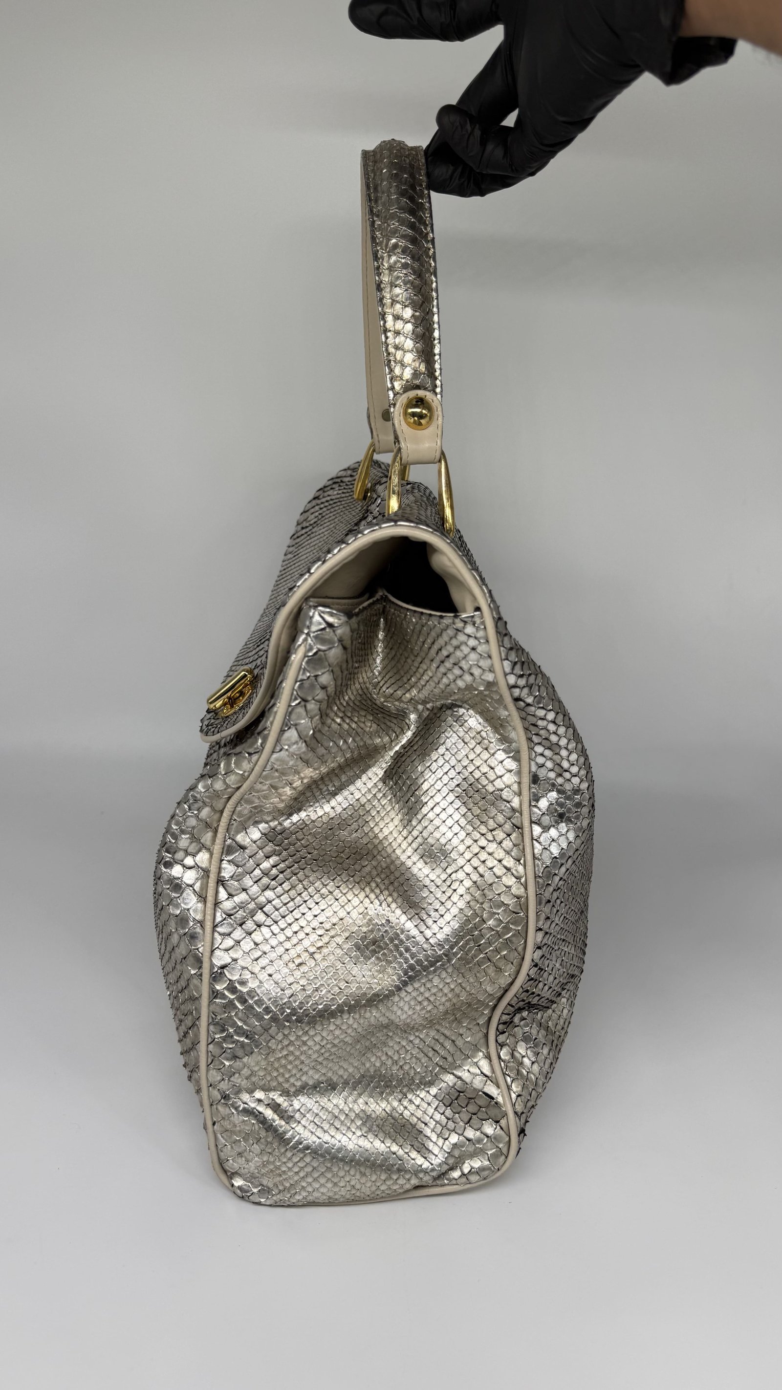 Jane August Metallic Silver Python Handbag