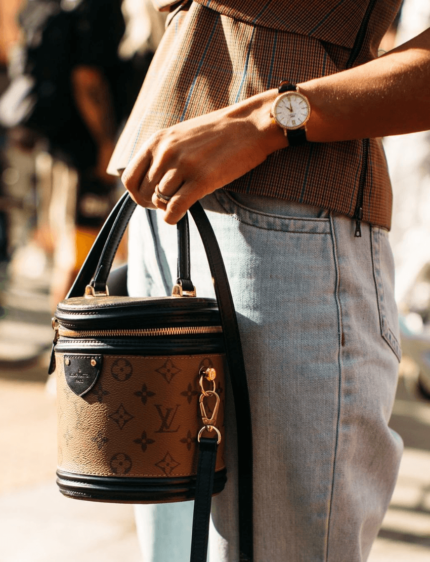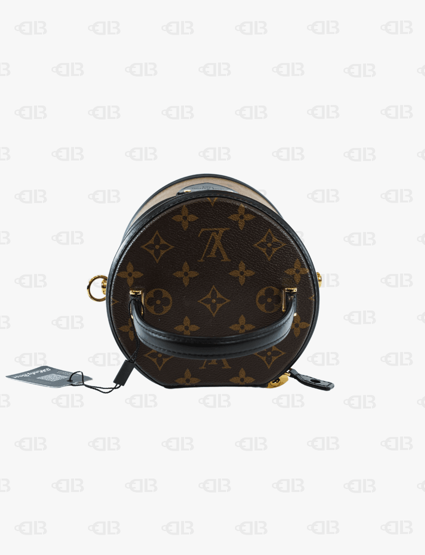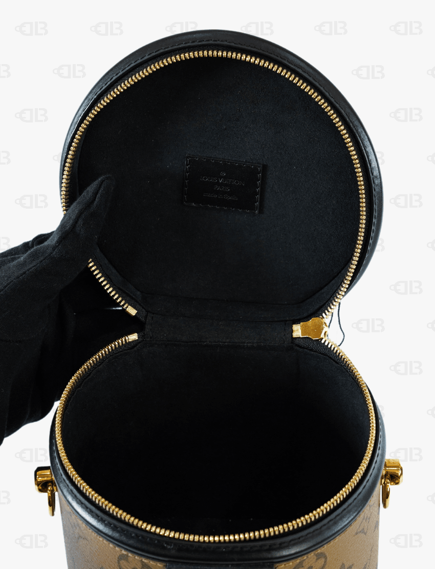 Featuring the historical shape of the LV Cannes beauty case, designer Nicolas Ghesquière revives a long-standing classic with the Cannes handbag. Petite in size and presented in a mix of Monogram and Monogram reverse coated canvas, the elegant piece reanimates a traditional silhouette steeped in Louis Vuitton heritage. A removable leather strap and top handle provide a range of carrying options.